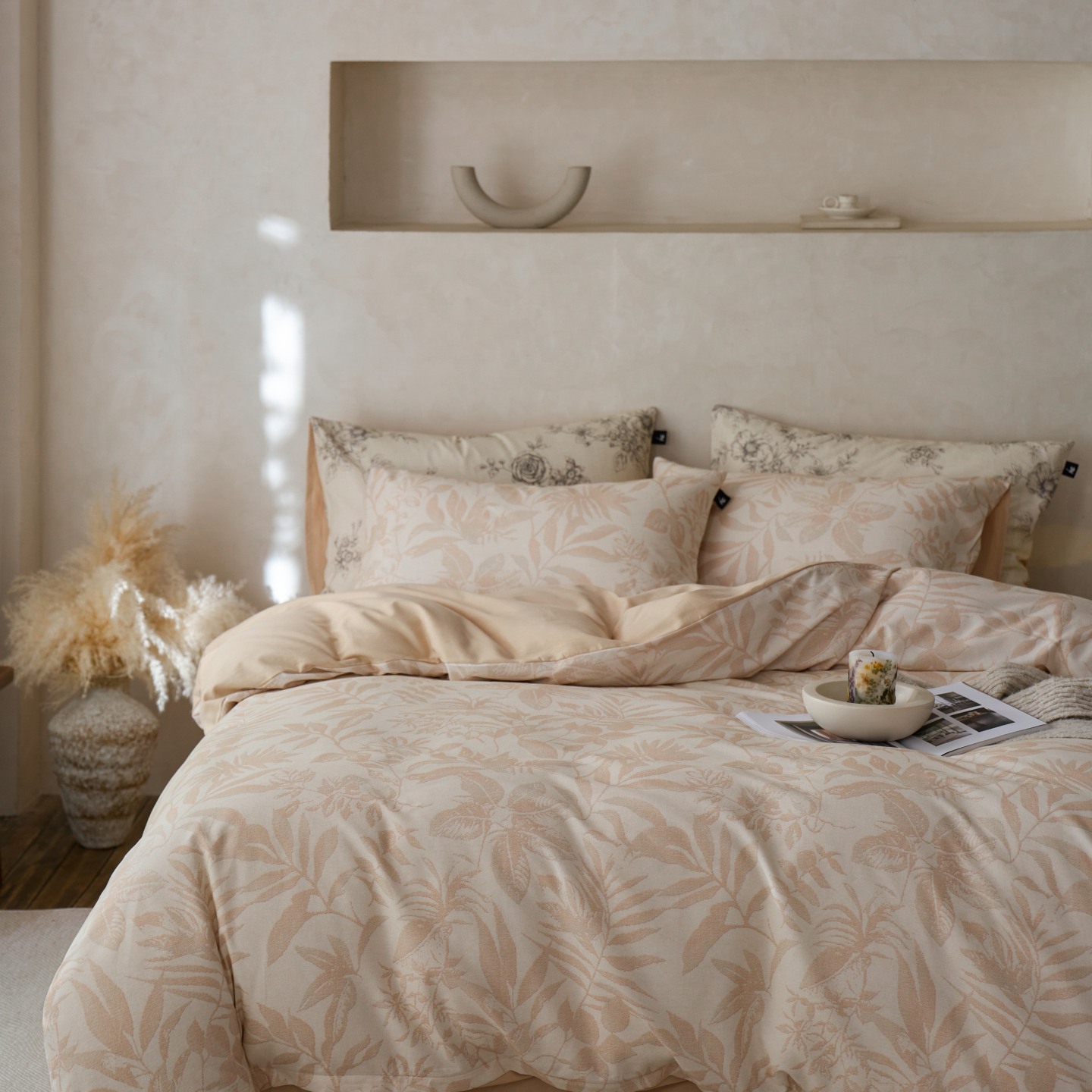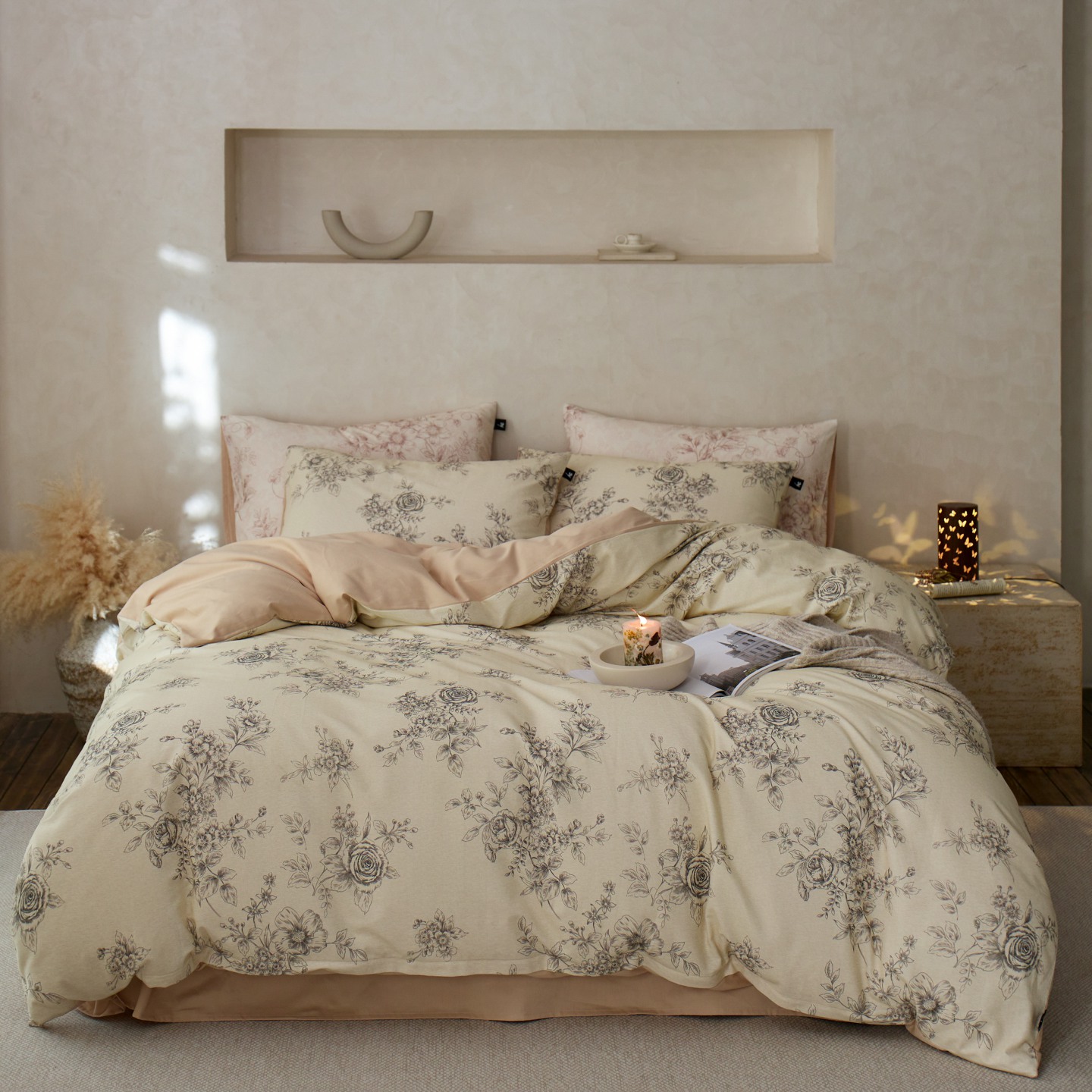 商品名称:安莱生活 2025新款A类40支磨毛印花全棉四件套 古屿-米