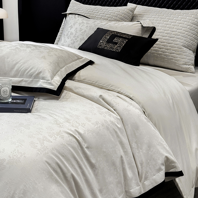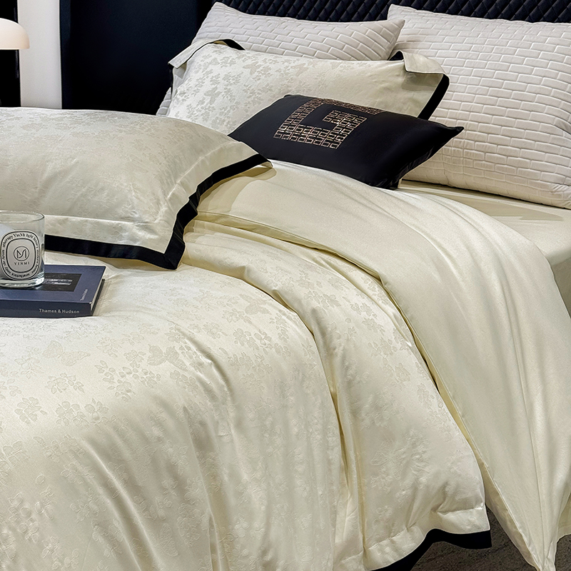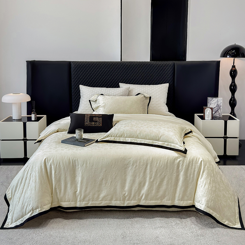 若未家居 LOVEWE HOUSE 2025新款50S长绒棉提花轻奢撞色小黑边工艺四件套- 繁星 奶酪色