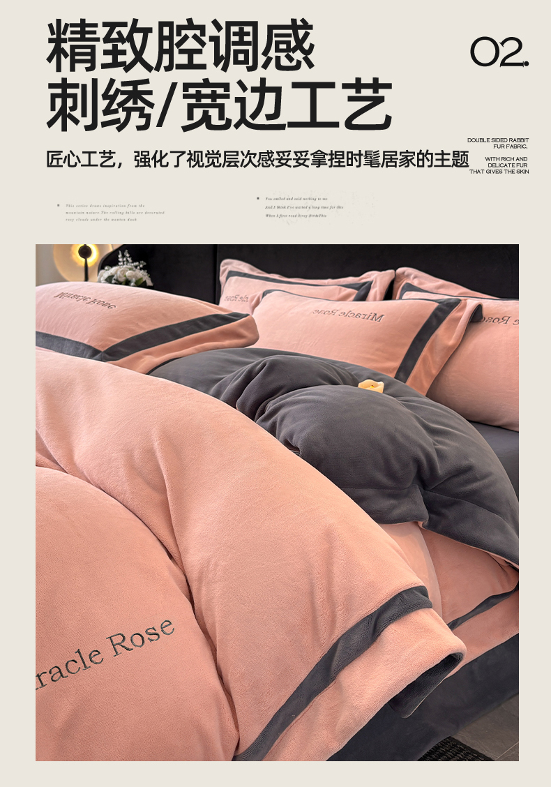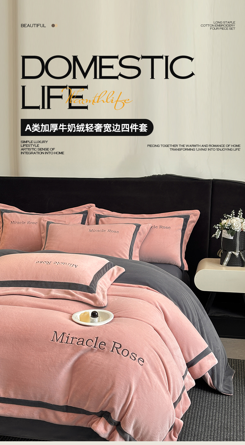 当前位置: 91家纺网 > 商品网购 > 床品套件 > 四件套 > 牛奶绒四件套 > 笙意家纺 2025新款A类加厚牛奶绒轻奢宽边四件套-威登 威登-可可粉+绅士灰