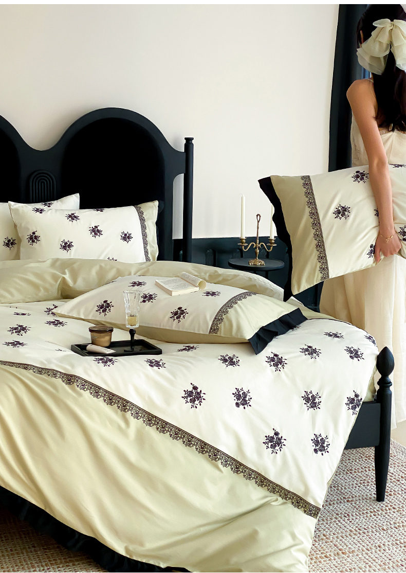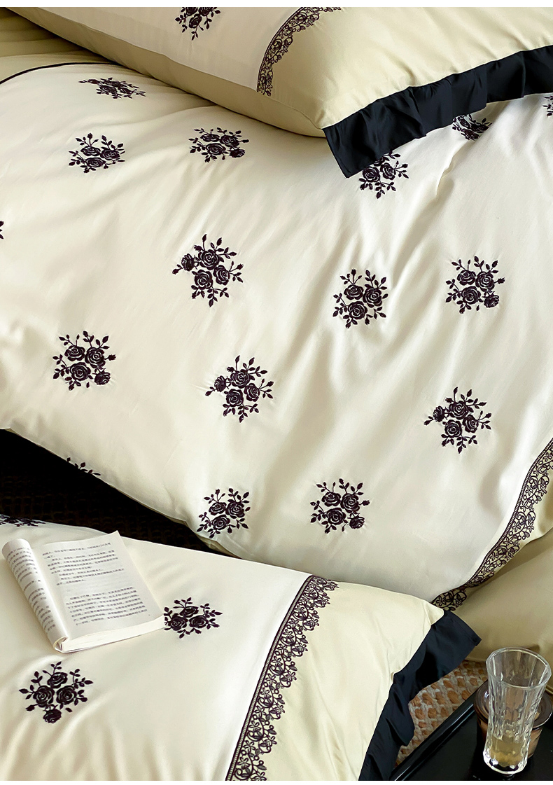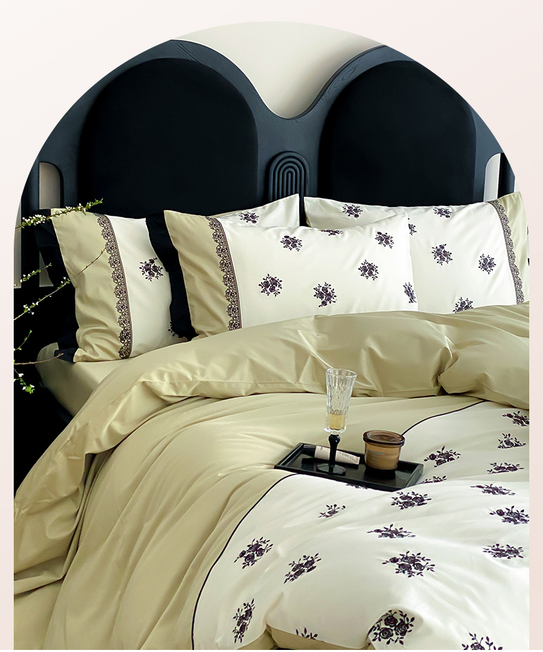 (总)云栖家居 2025秋冬新款50支纯色双拼加厚全棉磨毛被套刺绣100S纯棉四件套-小蝴蝶系列,粉灰,粉紫,蓝灰,米玉,月光黄