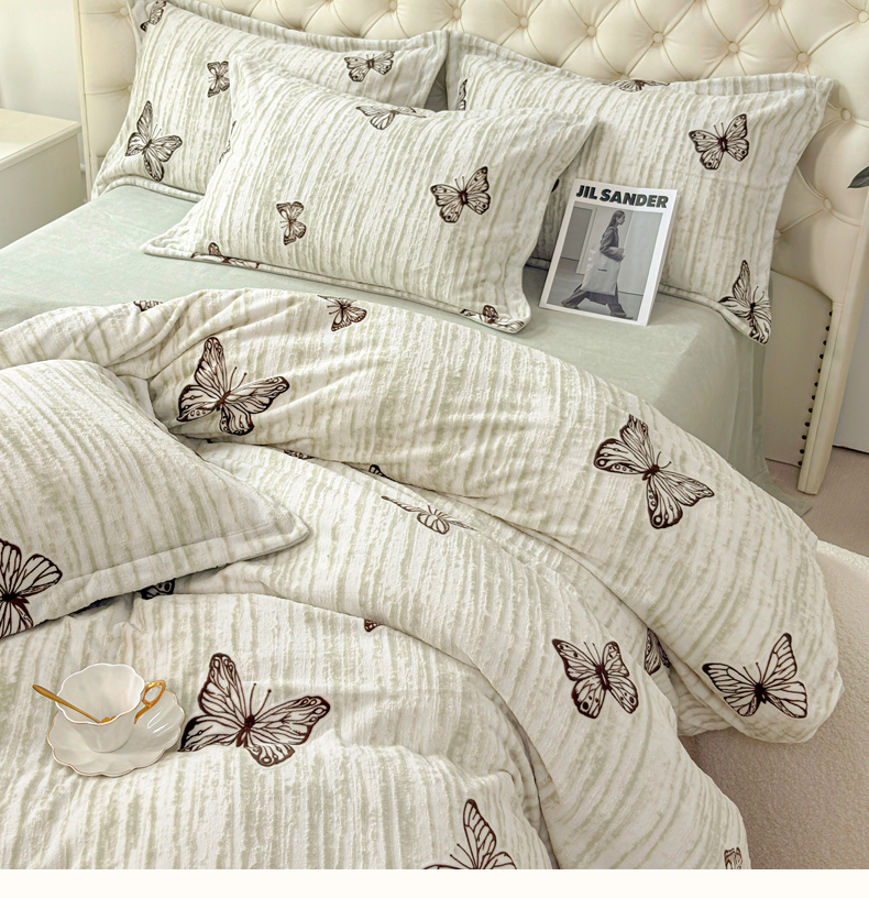(总)未来家居 2025新款赫本风印花款提花绒四件套