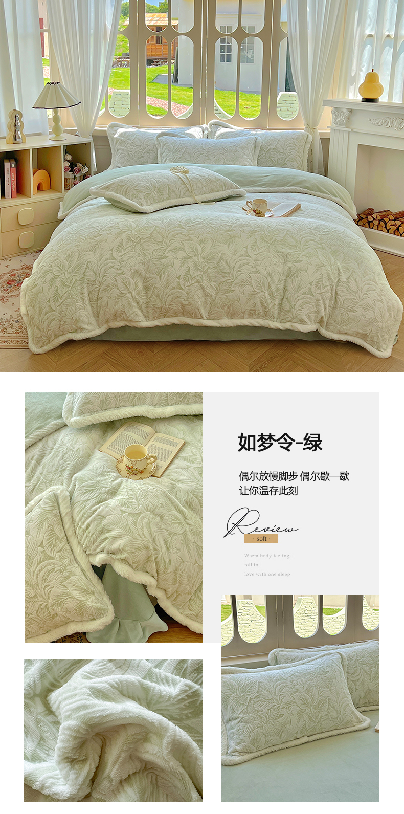 当前位置: 91家纺网 > 商品网购 > 床品套件 > 四件套 > 牛奶绒四件套 > Mata蔓塔家 2025新款小清新牛奶绒雕花兔毛绒包边四件套 如梦令-豆沙