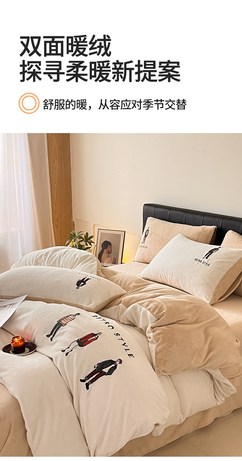 商品名称:(总)ONE TWO ONE 121 新品【牛奶绒刺绣四件套】2025毛毯被子四件套单件床单被套床笠珊瑚绒牛奶绒冬被法兰绒兔毛绒男孩Boy