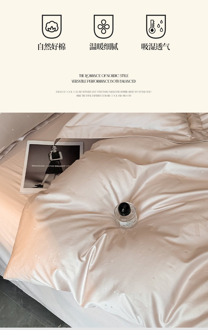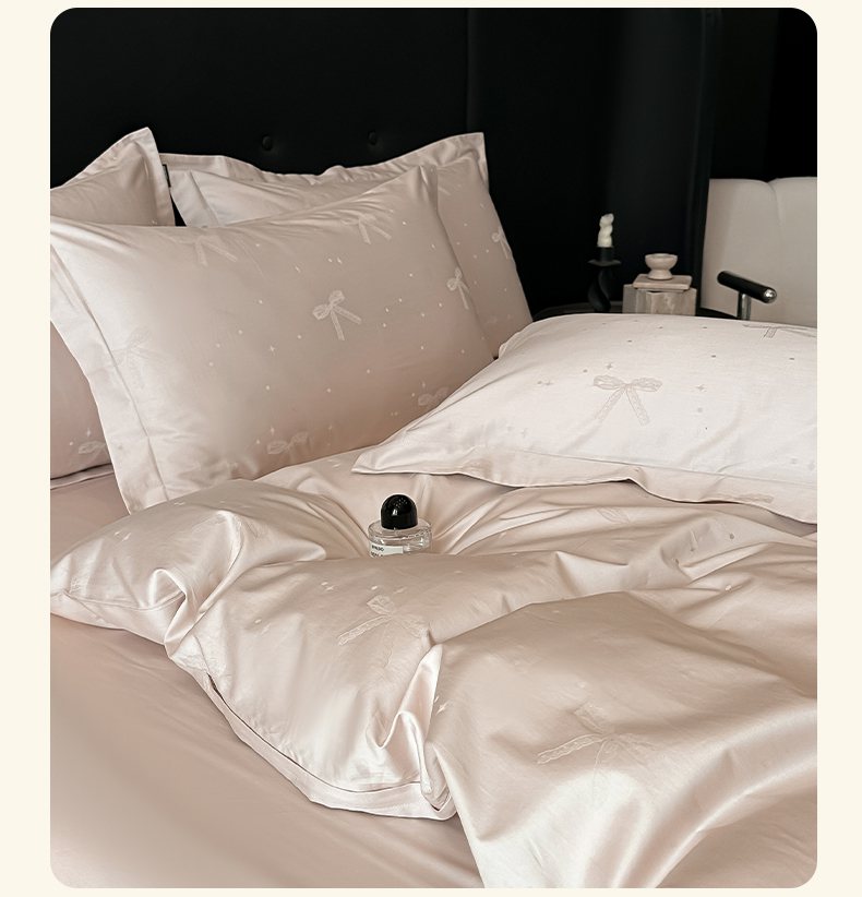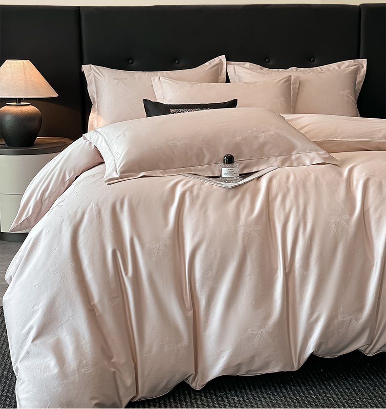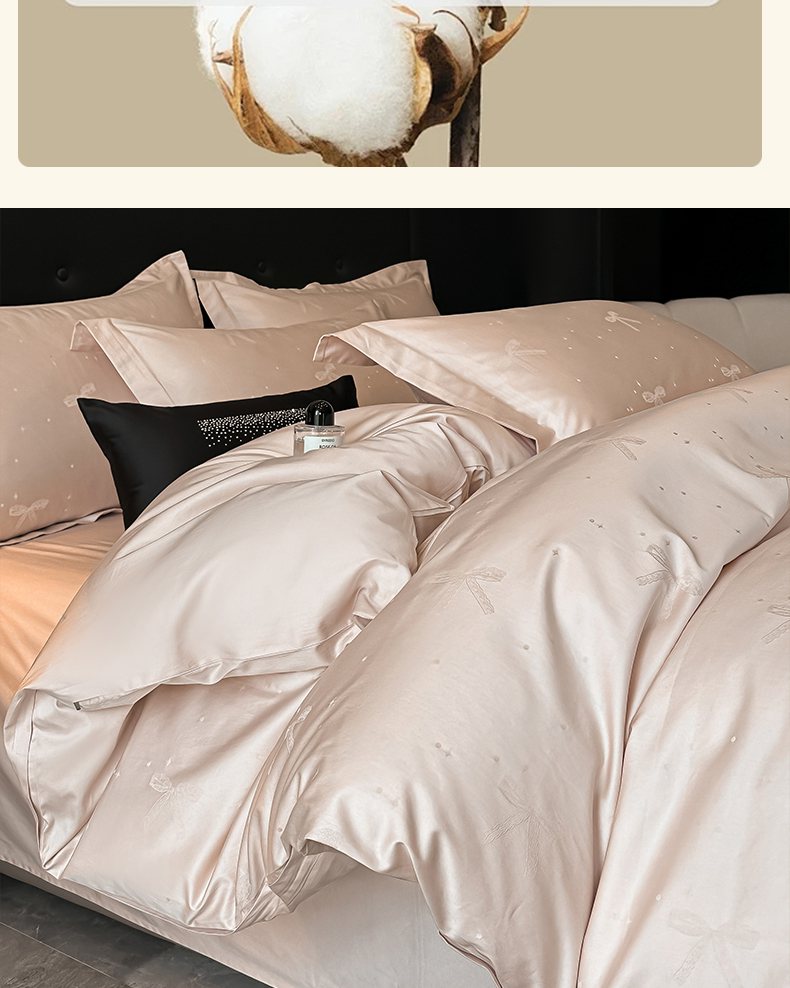 商品名称:梵克保罗 2025春夏新品50S长绒棉轻奢提花四件套 婉心-粉
