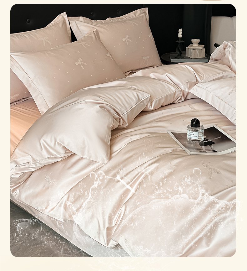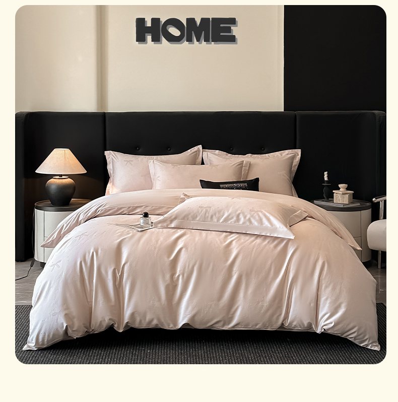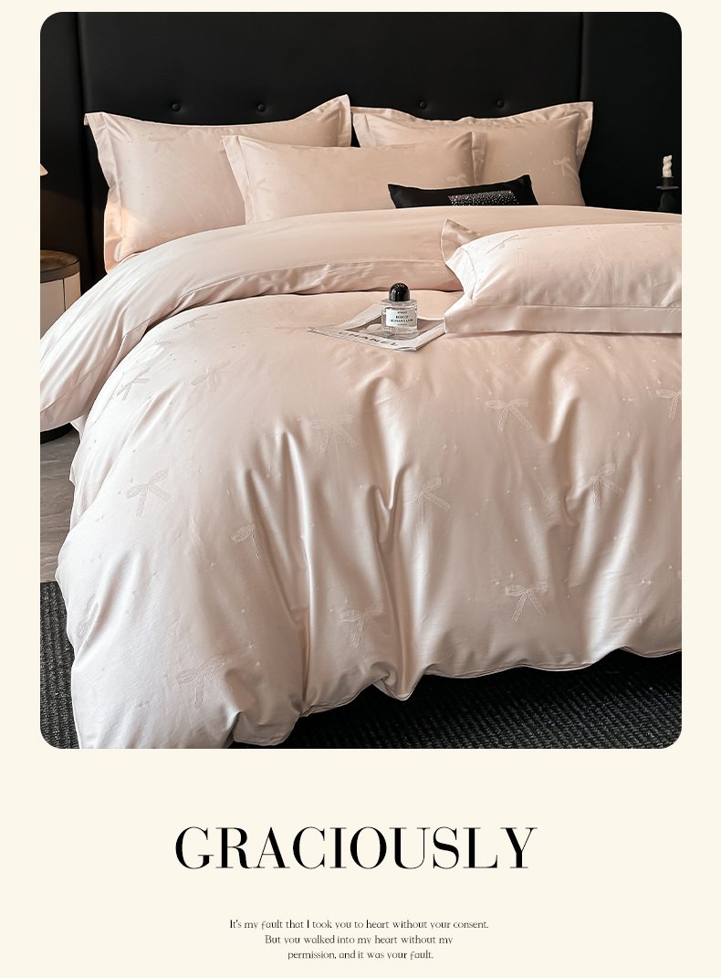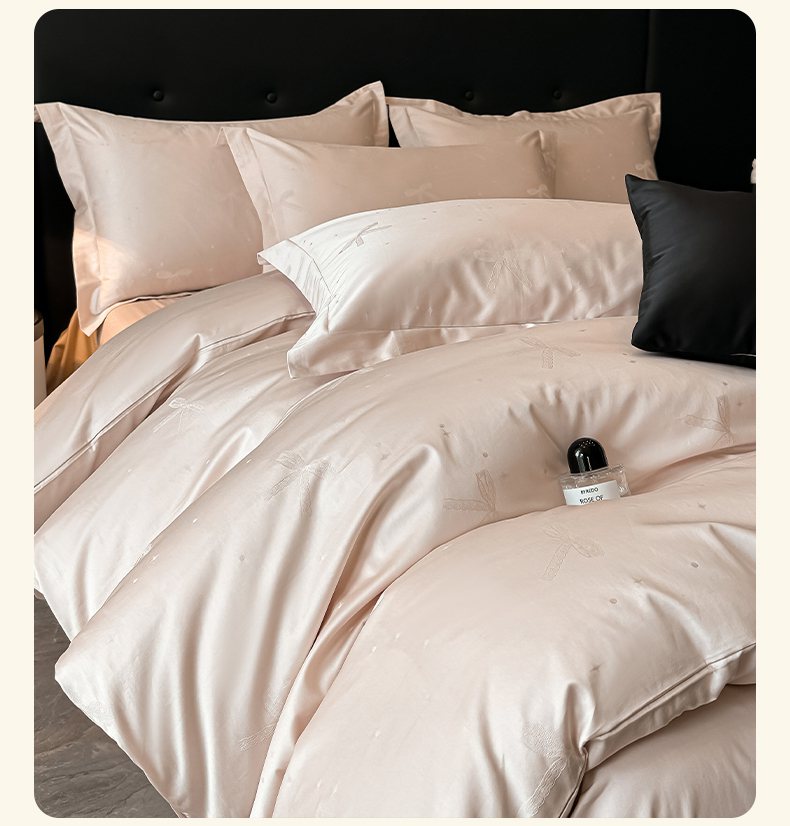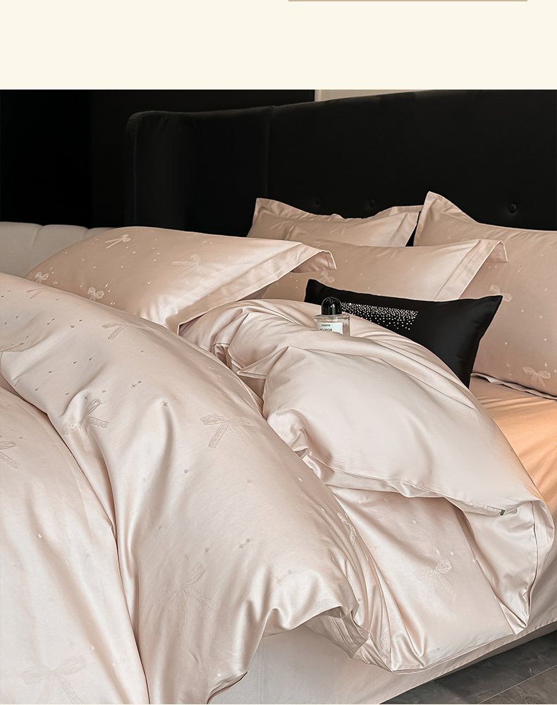 商品名称:梵克保罗 2025春夏新品50S长绒棉轻奢提花四件套 婉心-粉