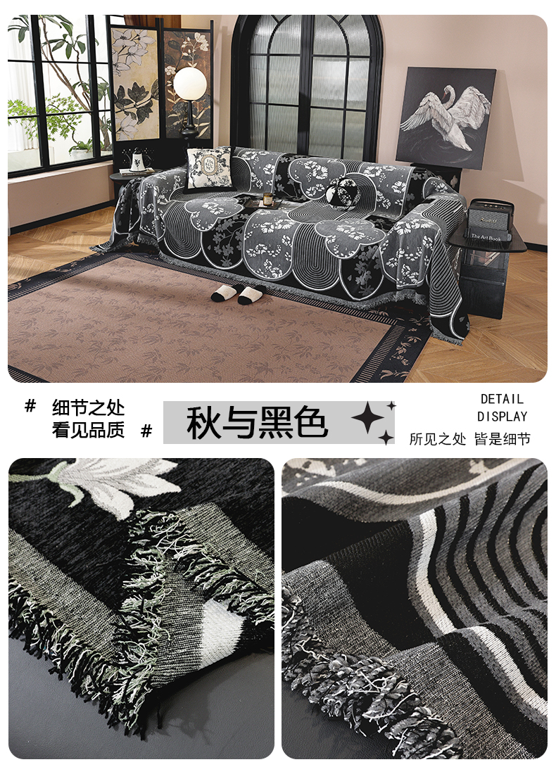 当前位置: 91家纺网 > 商品网购 > 居家布艺 > 防尘保护罩 > 其它罩类/套类 > 共鸣沙发垫 2025新款亲肤舒适雪尼尔玉兰黑色沙发巾 秋与黑色 180x130cm沙发巾