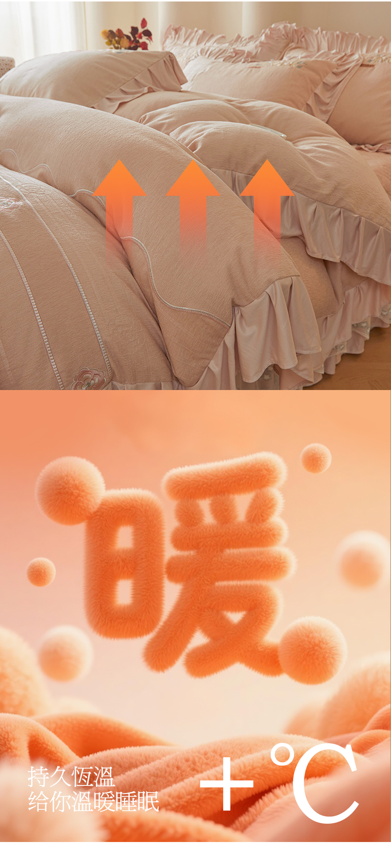 (总)宜凡家纺 2025新款兔绒提花牛奶绒夹棉床裙四件套,爱心 少女粉,爱心 粉紫,爱心 驼色,蝶舞 大红,蝶舞 米色,蝶舞 浅紫,蝶舞 玉色,简爱 苍青,简爱 豆沙紫,简爱 玉色,樱桃 苍青,樱桃 豆沙紫,樱桃 奶油白