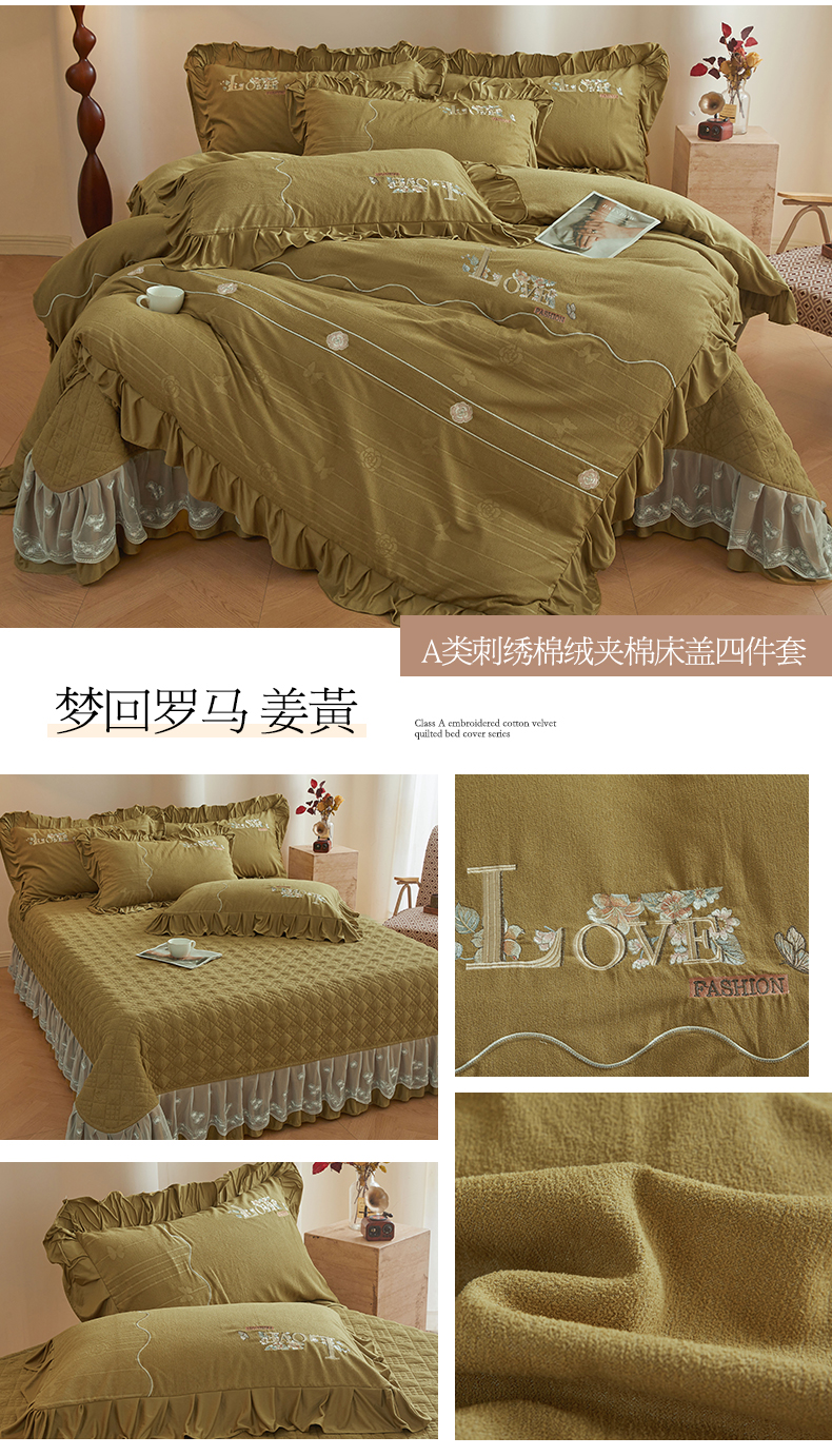 商品名称:宜凡家纺 2025新款A类棉绒刺绣花夹棉床盖四件套--梦回罗马 梦回罗马 降紫