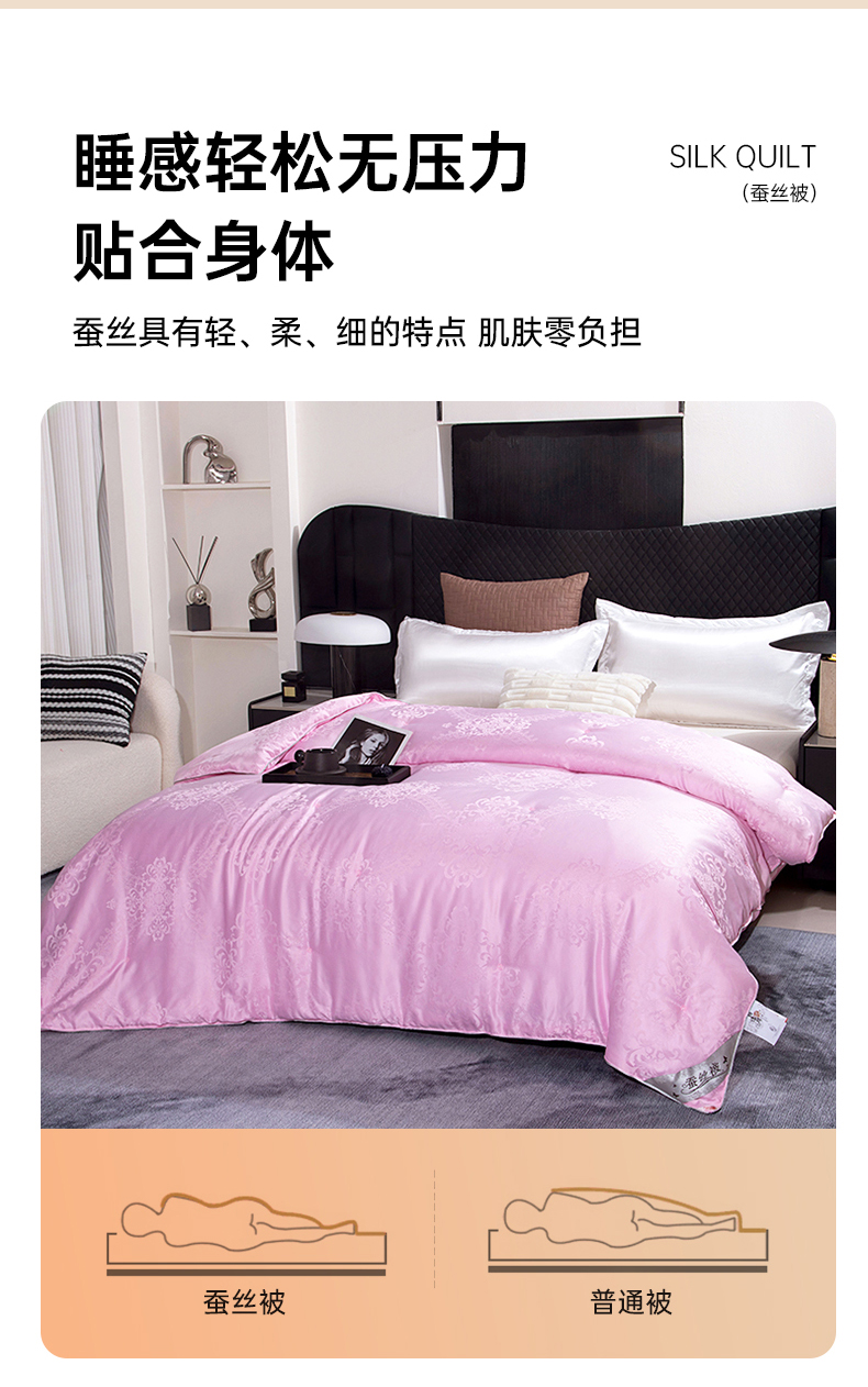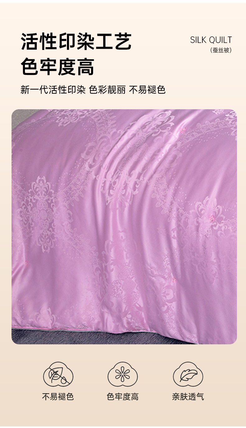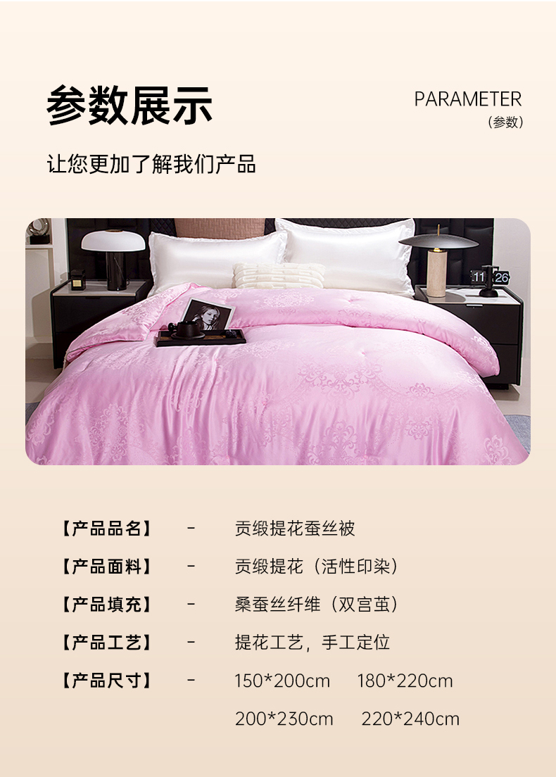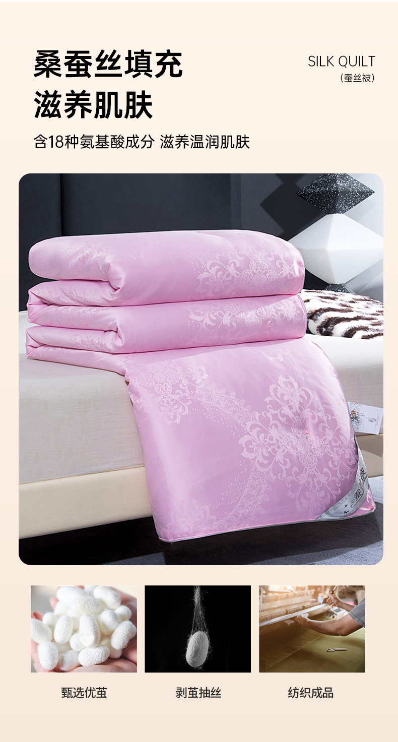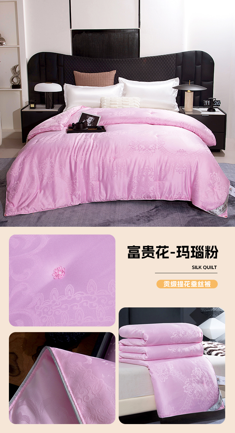 前程家纺 2025新款贡缎提花被被子被芯-富贵花 富贵花-玛瑙粉