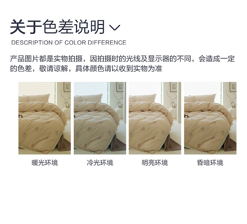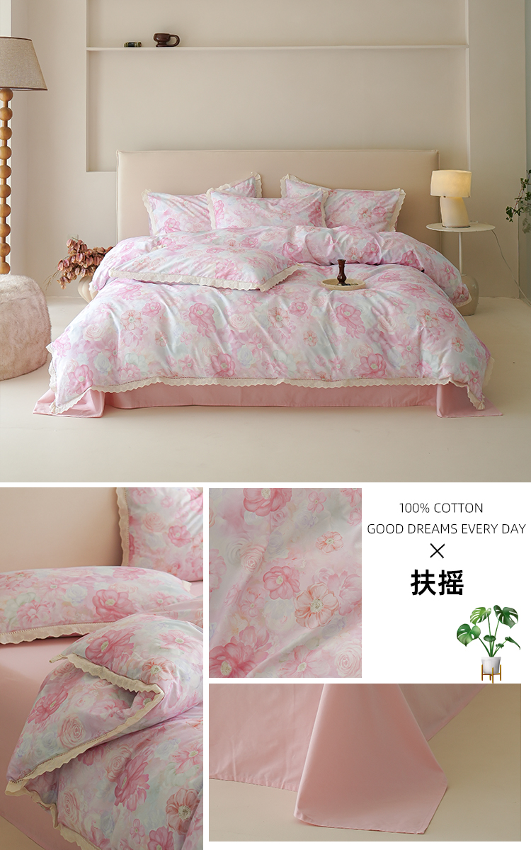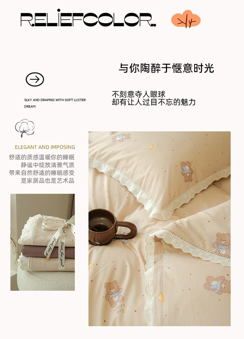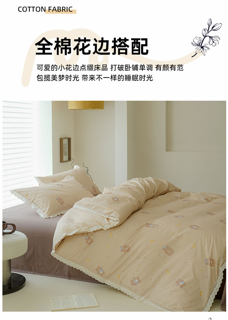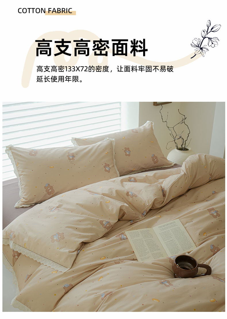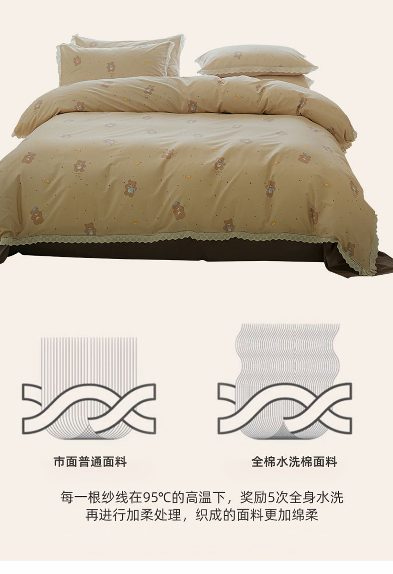 商品名称:洺兰家居 2025年小清新全棉13372镂空花边小碎花ins风水洗棉四件套 小熊