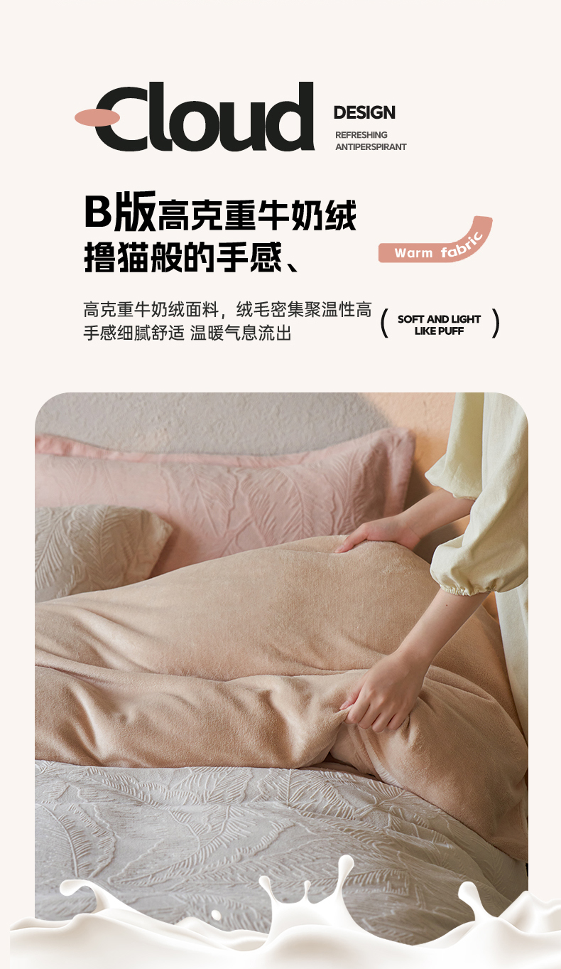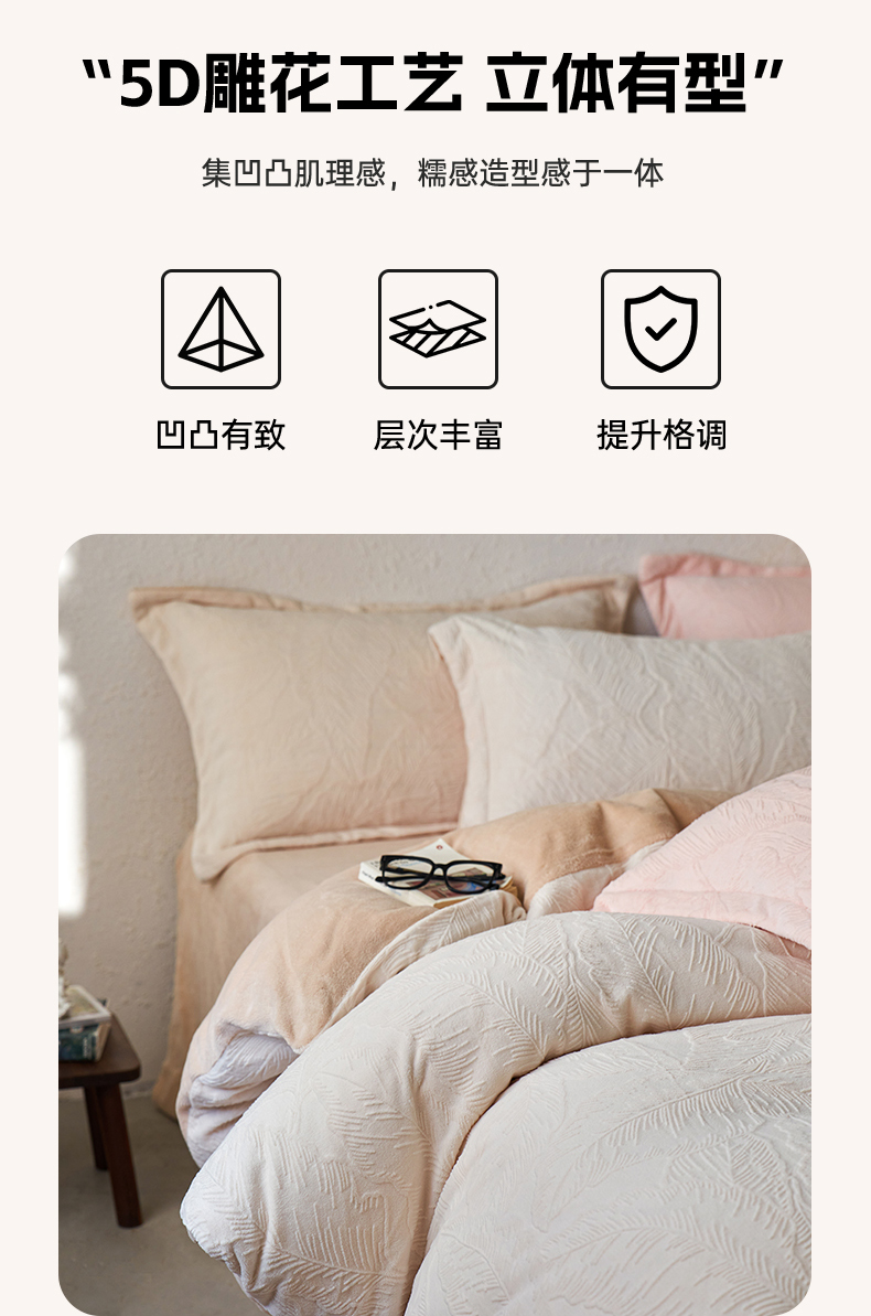 当前位置: 91家纺网 > 商品网购 > 床品套件 > 四件套 > 牛奶绒四件套 > 亿梵家居 2025秋冬新款A类全消光牛奶绒立体5D雕花绒四件套-风格一 (提供买家秀) 芭提雅-奶油白