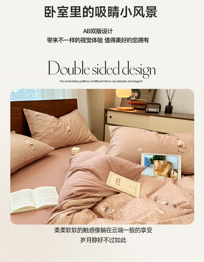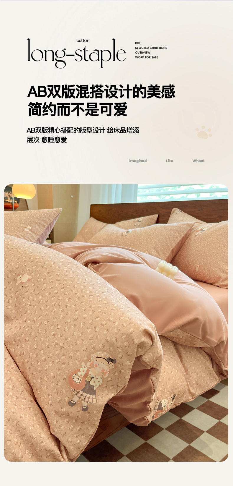 当前位置: 91家纺网 > 商品网购 > 床品套件 > 四件套 > 全棉普通四件套 > 小叮当家纺仓储工厂店 2025新款提供买家秀爆款花型不断货美拉德卡通全棉纯棉磨毛四件套 乐桃