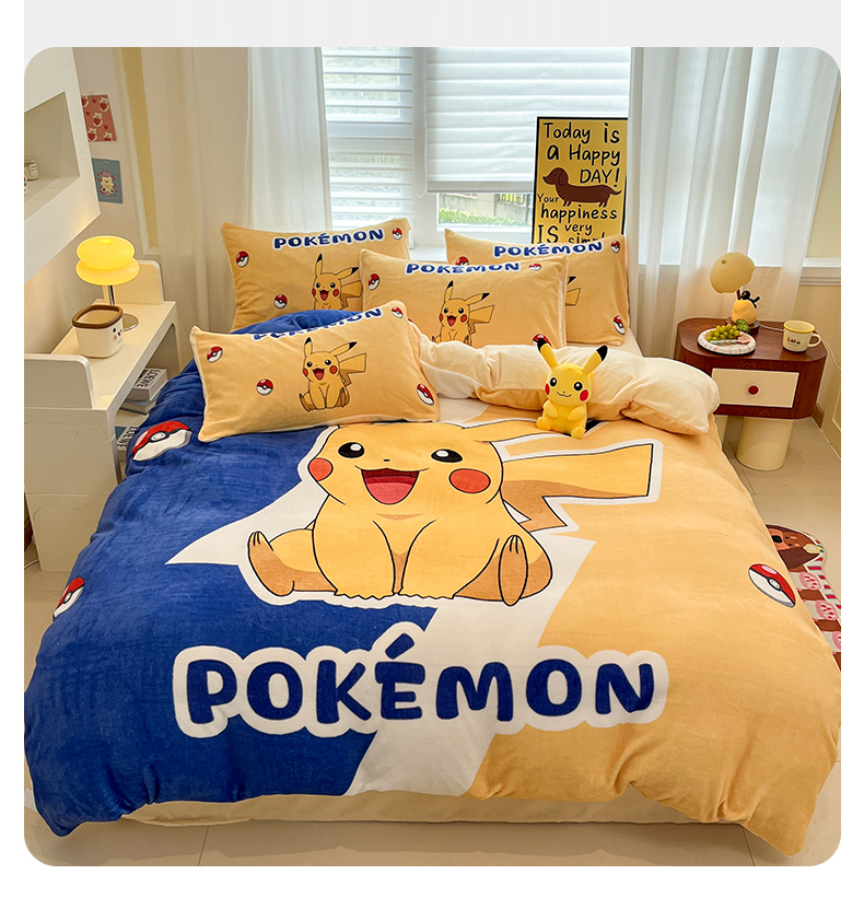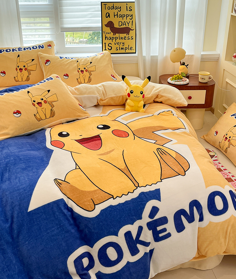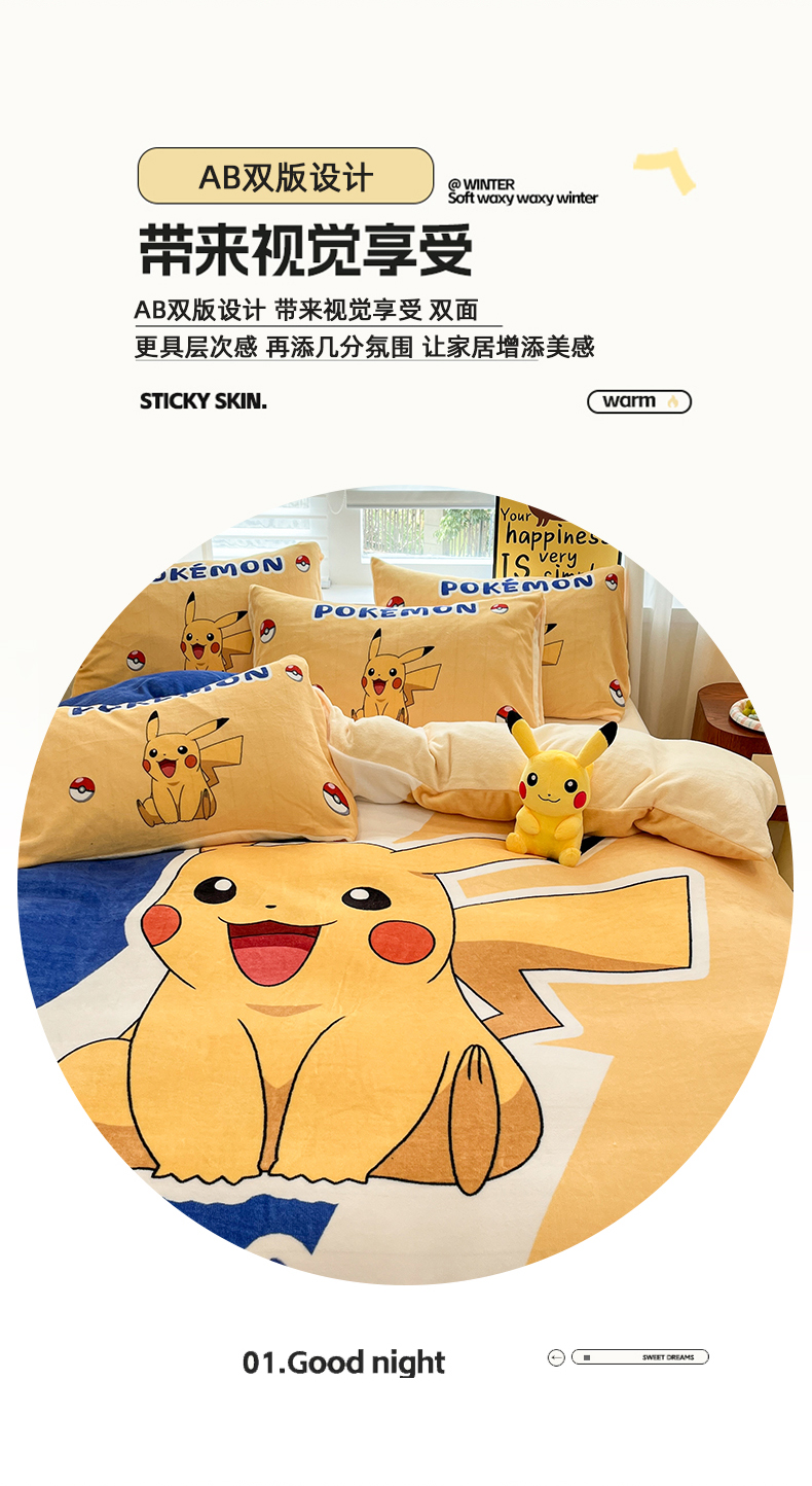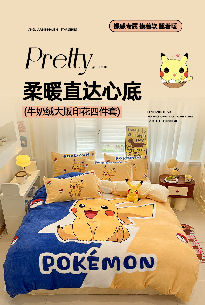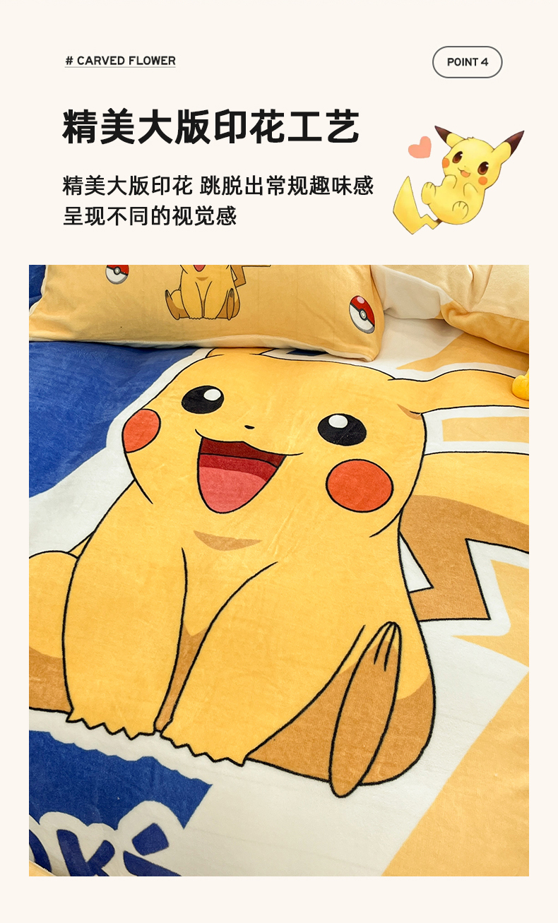 当前位置: 91家纺网 > 商品网购 > 床品套件 > 四件套 > 牛奶绒四件套 > 桃子家居 2025新款A类正版宝可梦授权皮卡丘大版卡通平网数码印花加厚高克重牛奶绒四件套 绒大阪套件-俏皮皮卡丘