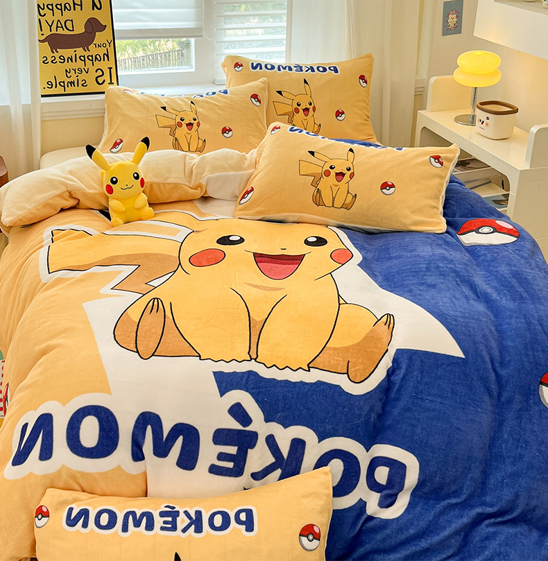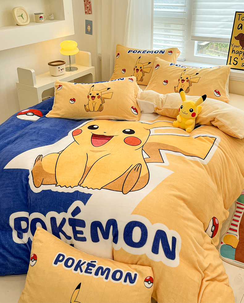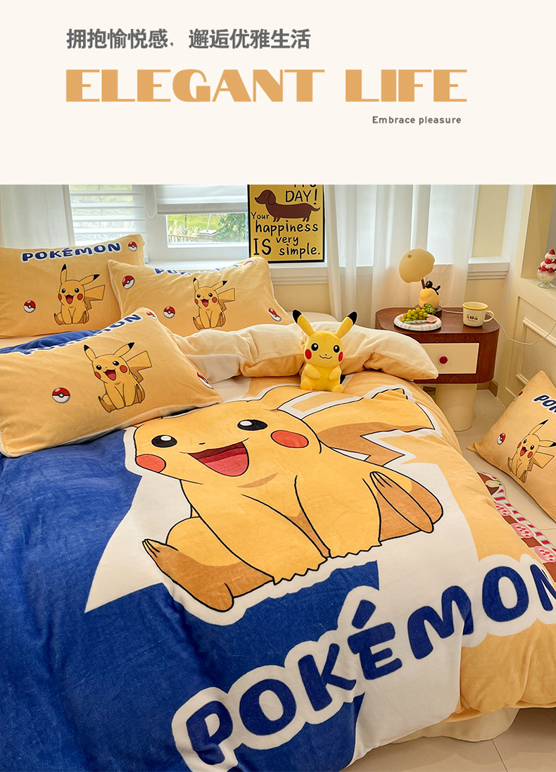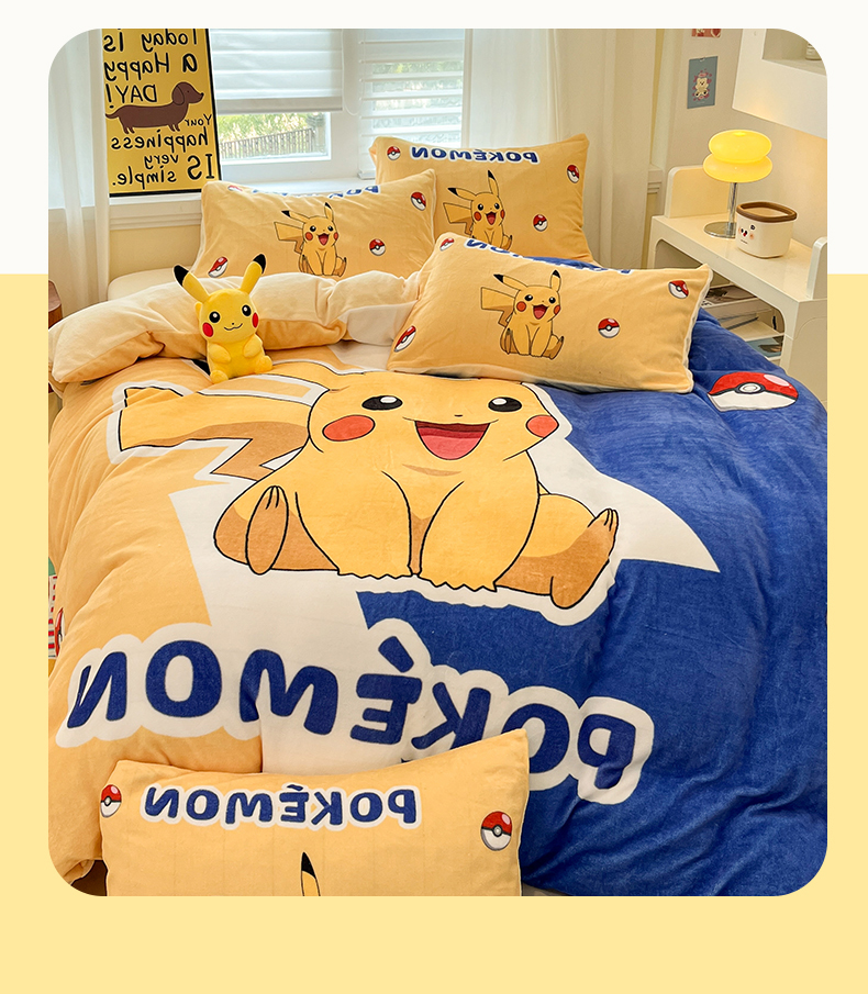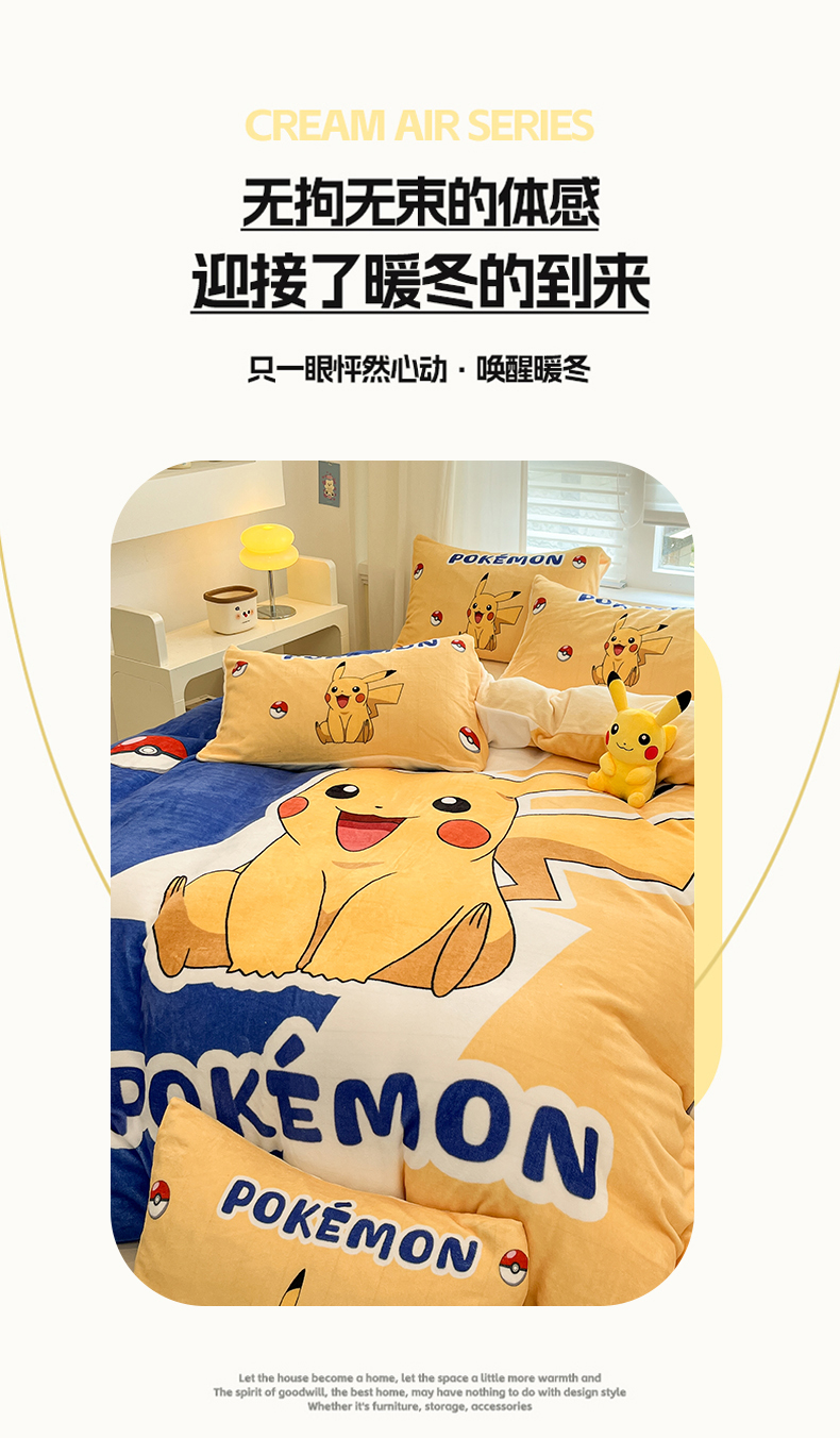 当前位置: 91家纺网 > 商品网购 > 床品套件 > 四件套 > 牛奶绒四件套 > 桃子家居 2025新款A类正版宝可梦授权皮卡丘大版卡通平网数码印花加厚高克重牛奶绒四件套 绒大阪套件-俏皮皮卡丘