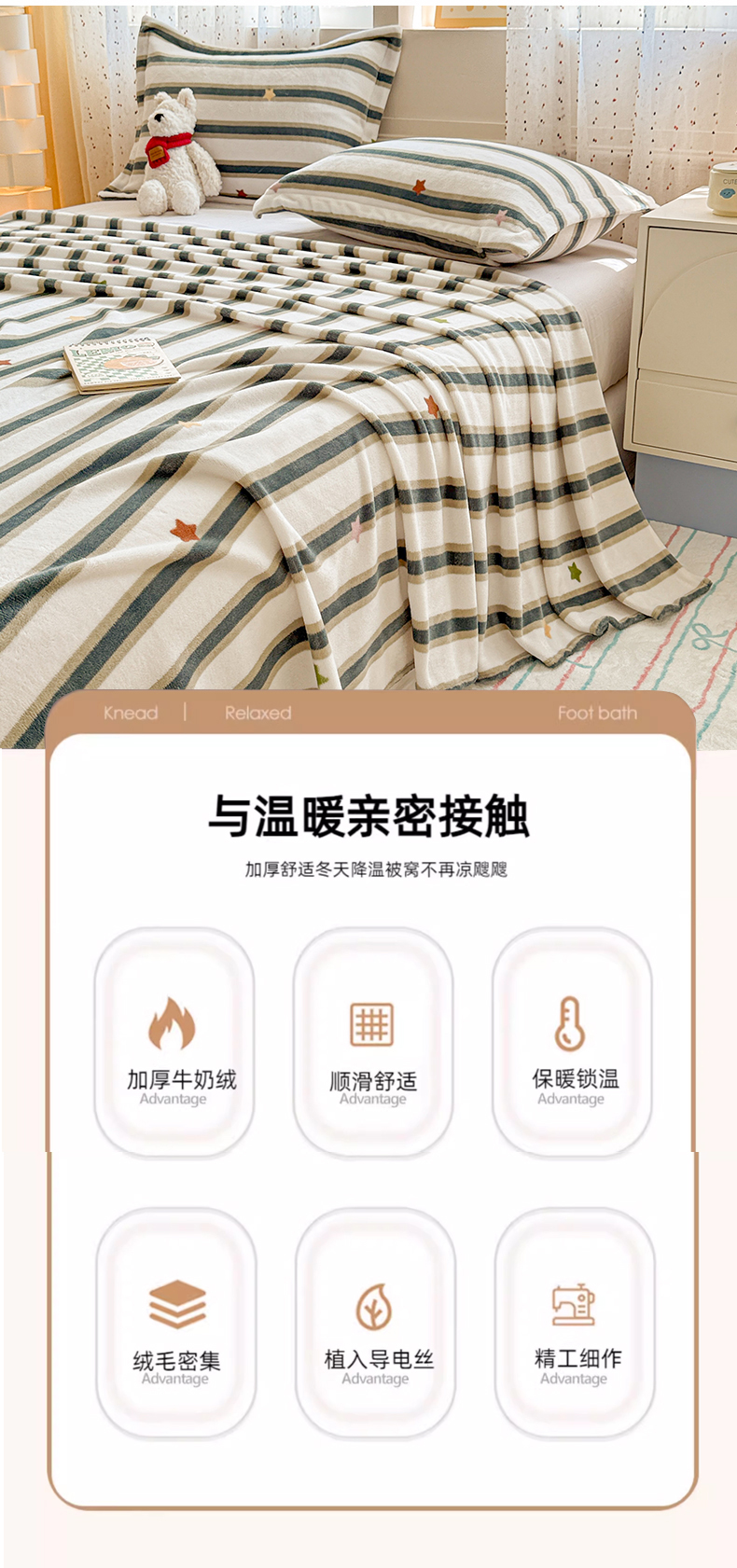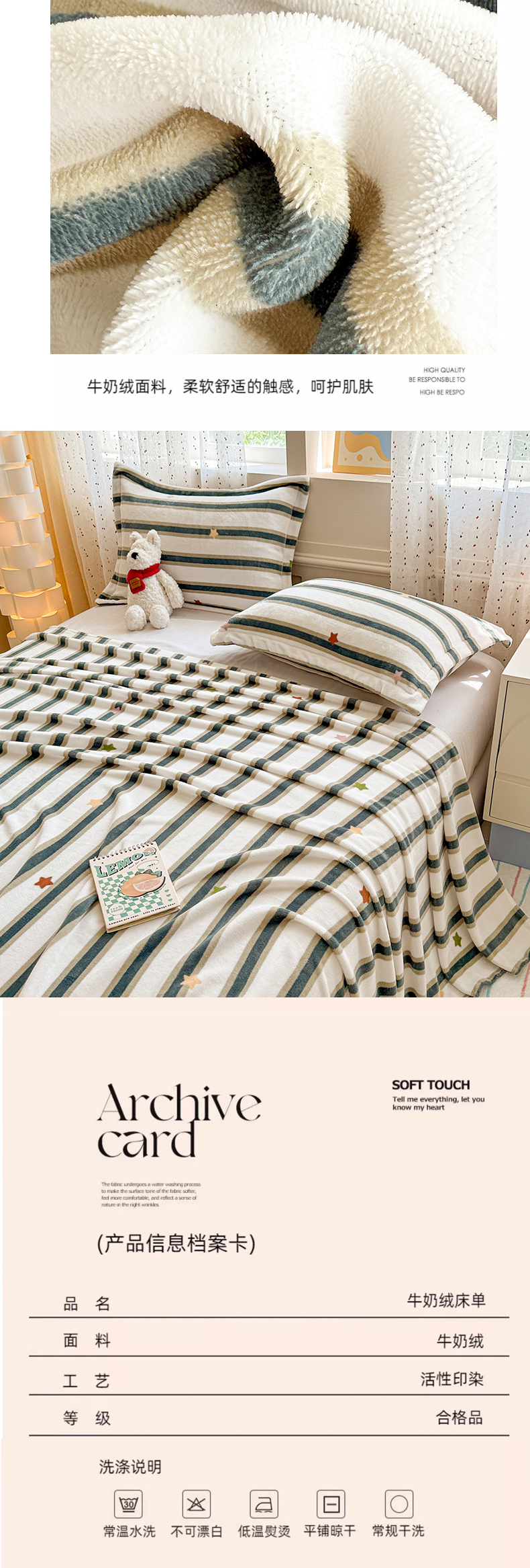 • 91家纺网 家纺一手货源 找家纺 丽美人 2025新款高克重印花牛奶绒无印风床单款(A类母婴级面料) 彩星黑条