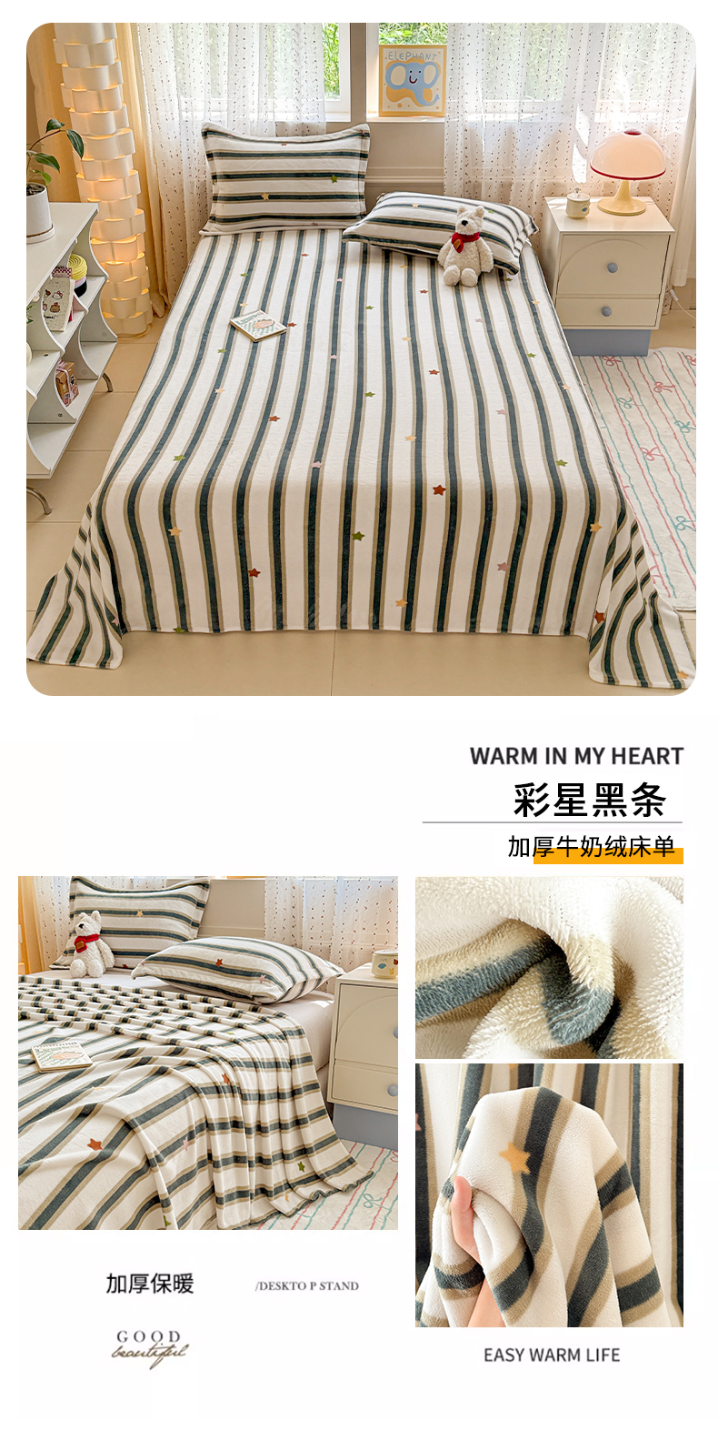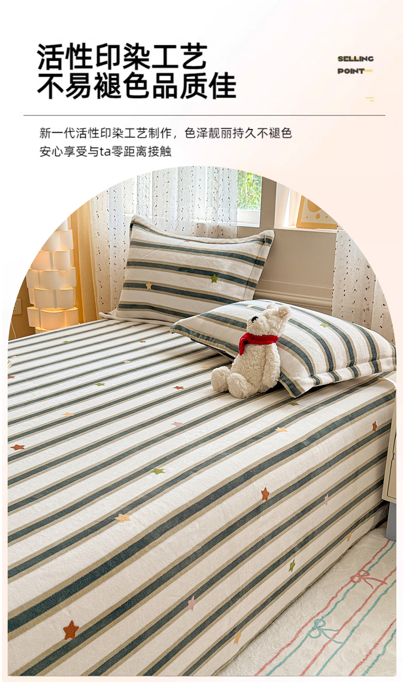 丽美人 2025新款高克重印花牛奶绒无印风床单款(A类母婴级面料) 彩星黑条