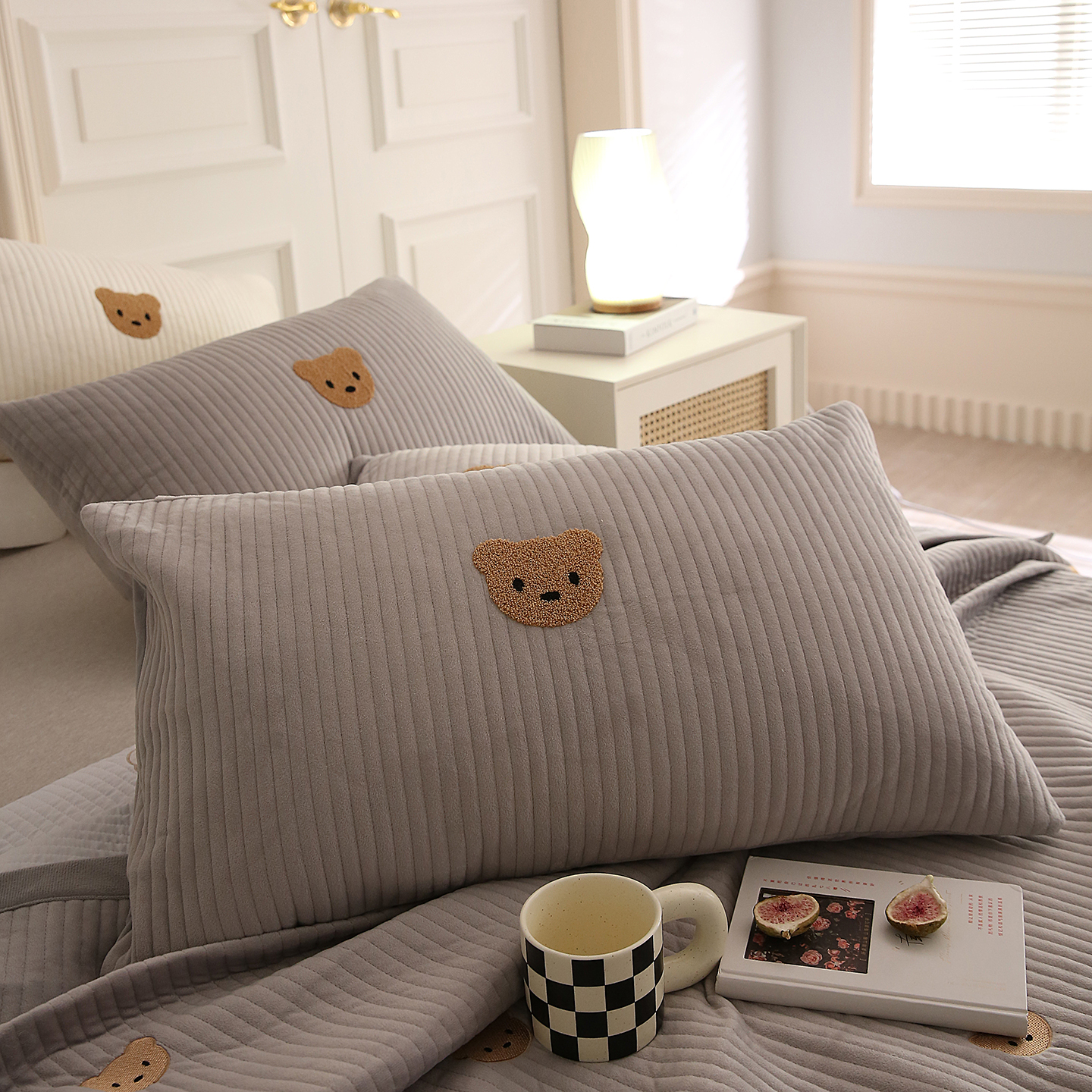 (总)期遇家居 2025新款夹棉绗缝绒枕套毛巾绣绒小熊枕套,绒小熊白,绒小熊灰,绒小熊玉,绒小熊咖