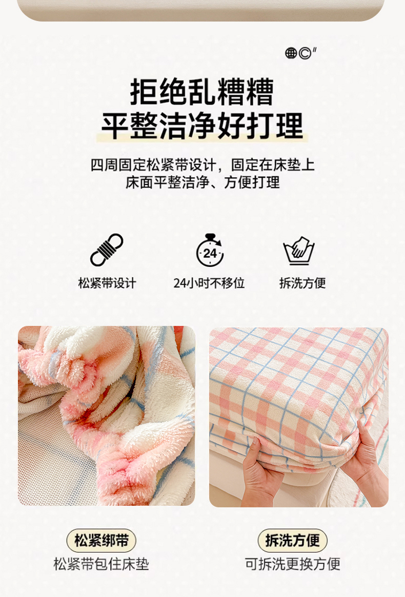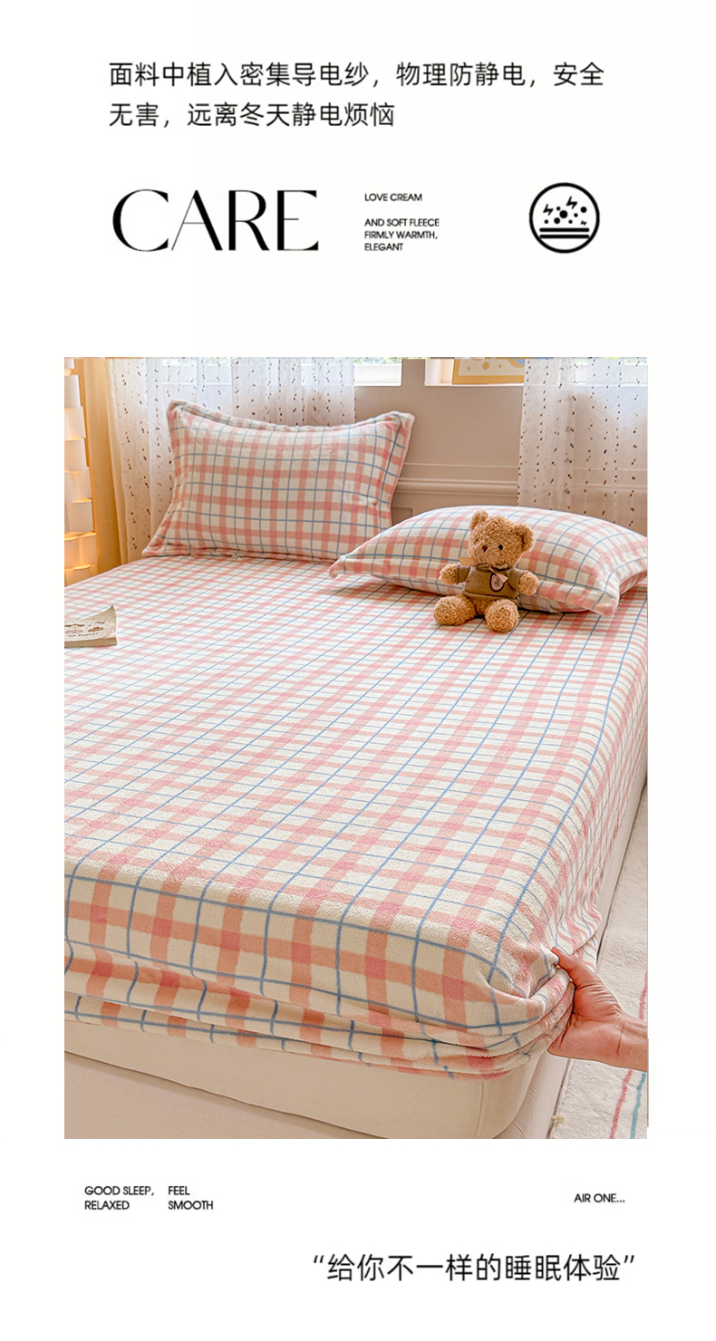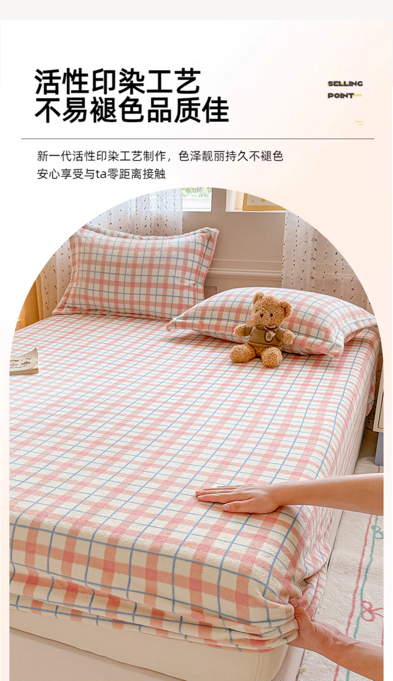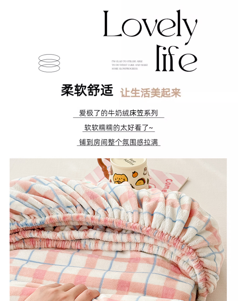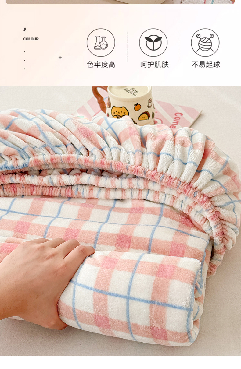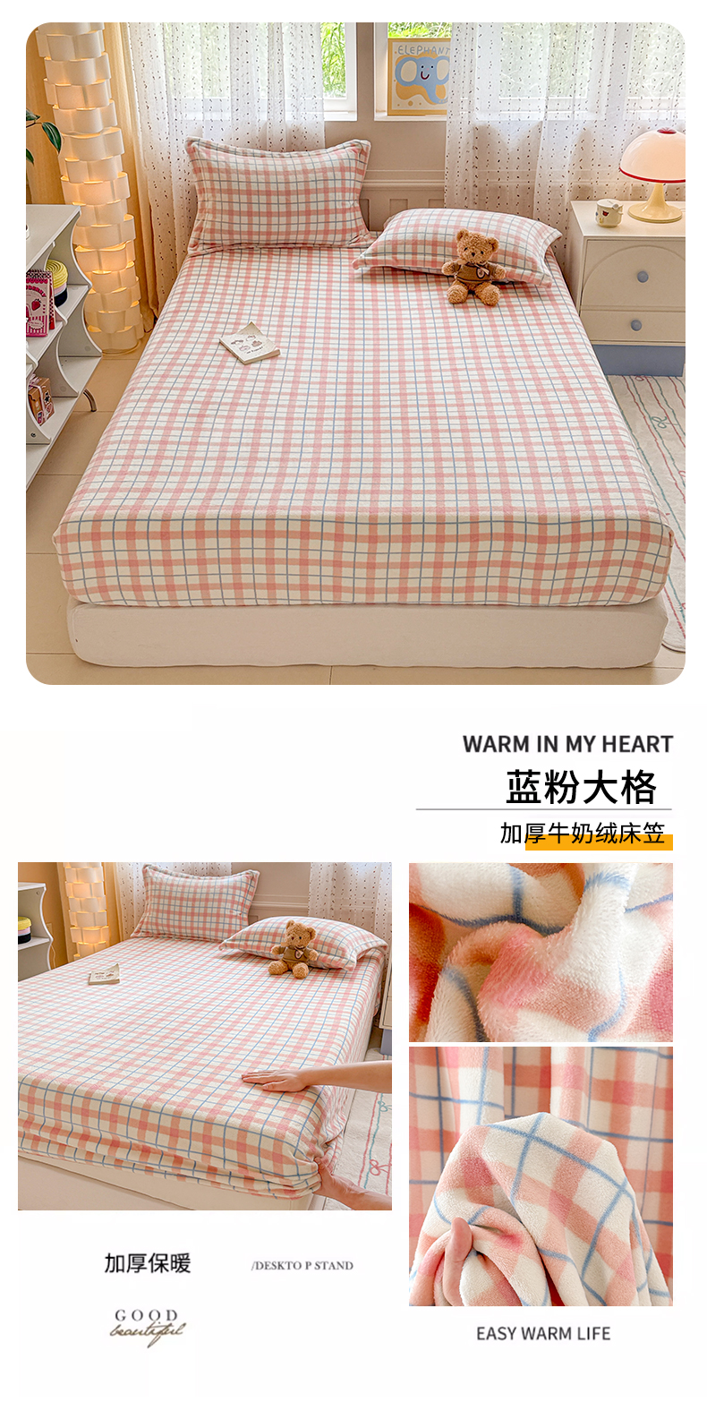 • 91家纺网 家纺一手货源 找家纺 丽美人 2025新款高克重印花牛奶绒无印风床笠款(A类母婴级面料) 蓝粉大格