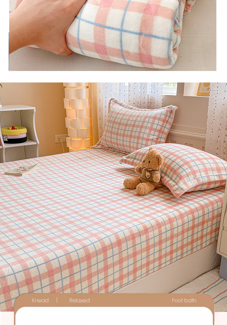 丽美人 2025新款高克重印花牛奶绒无印风床笠款(A类母婴级面料) 蓝粉大格