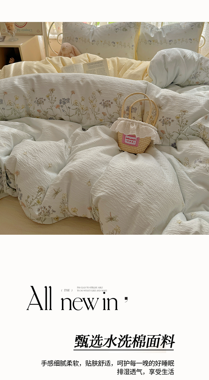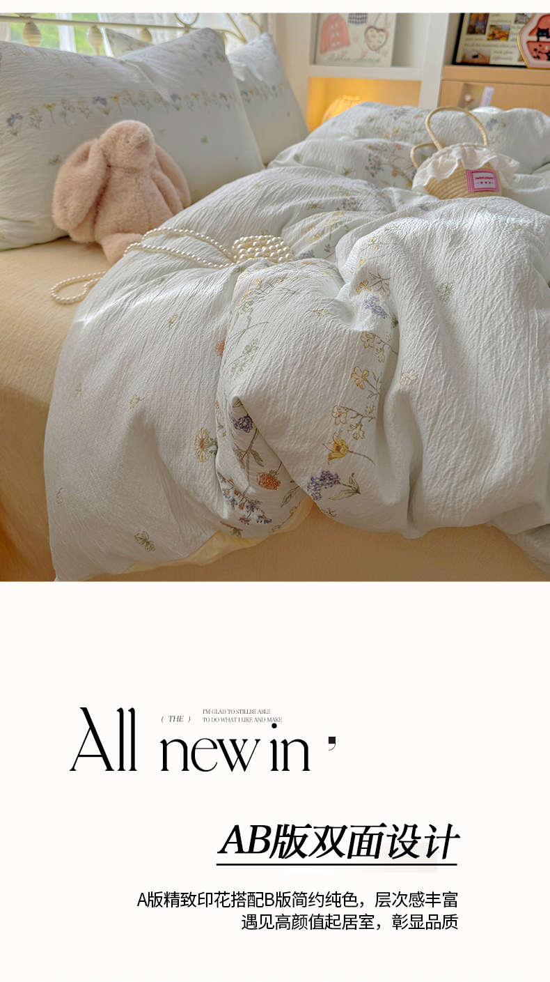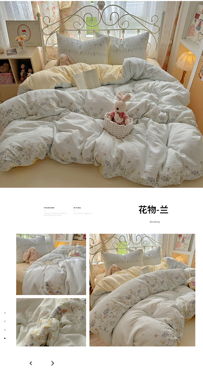 当前位置: 91家纺网 > 商品网购 > 床品套件 > 四件套 > 水洗棉四件套 > 阿曼达 2025爆款云感木m透气柔软印花可爱卡通软糯皱皱亲肤四件套 花物-兰