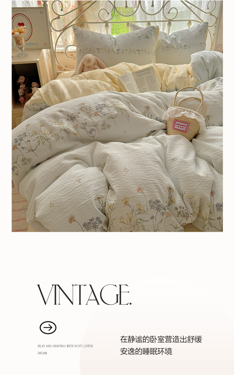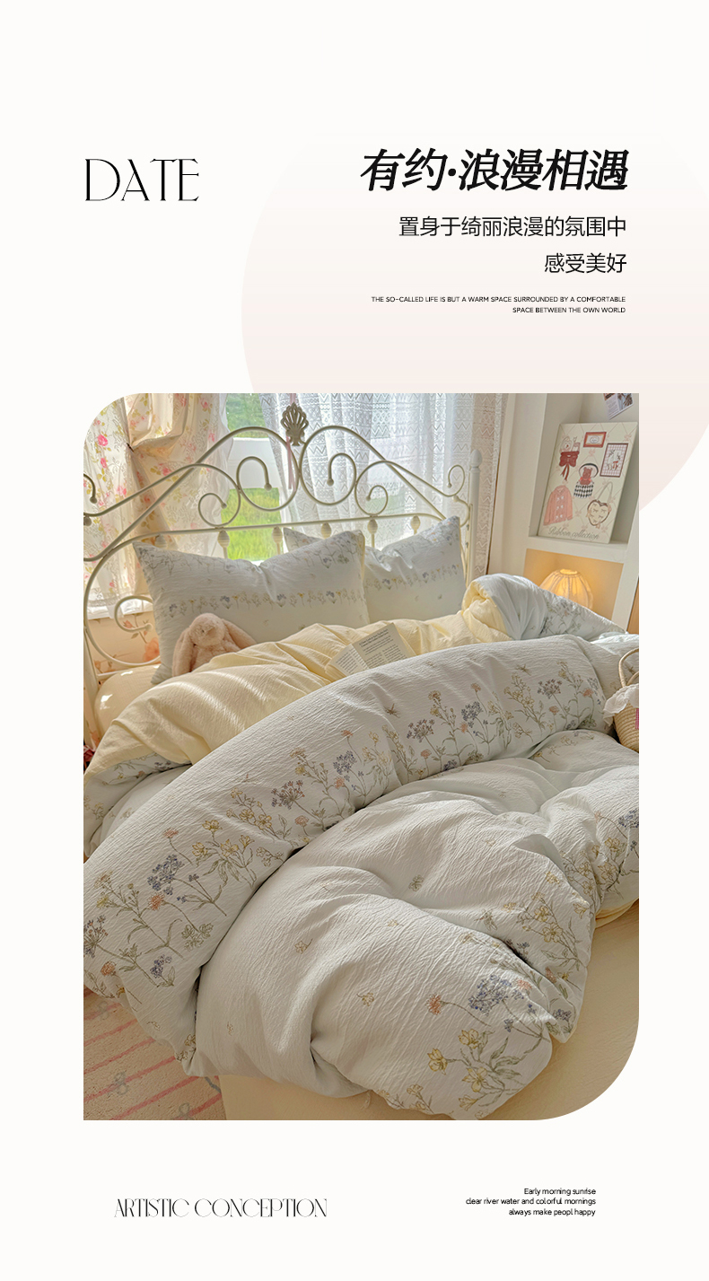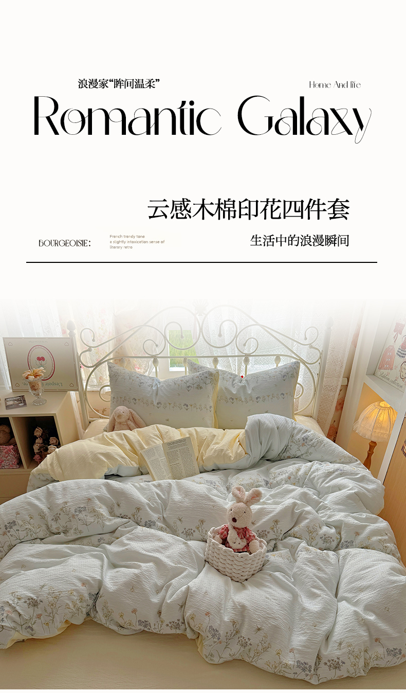 当前位置: 91家纺网 > 商品网购 > 床品套件 > 四件套 > 水洗棉四件套 > 阿曼达 2025爆款云感木m透气柔软印花可爱卡通软糯皱皱亲肤四件套 花物-兰