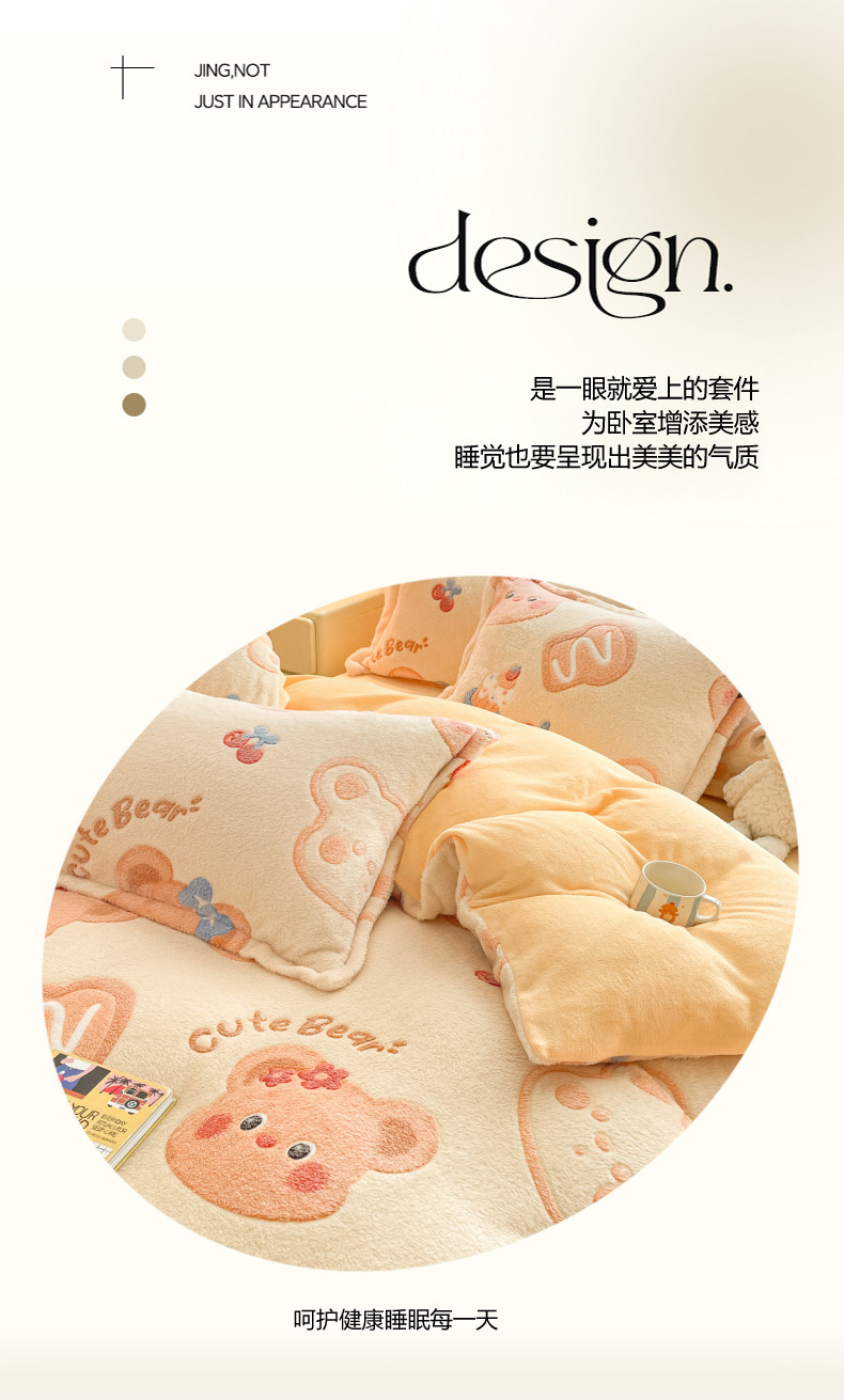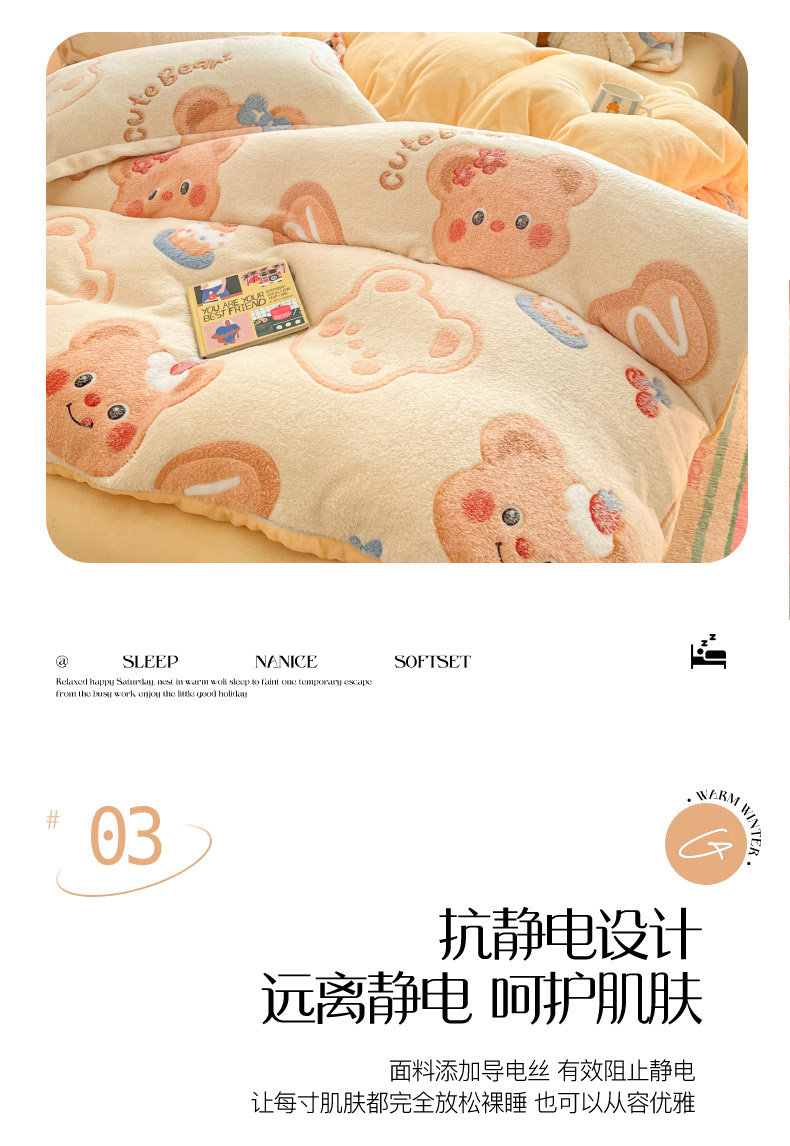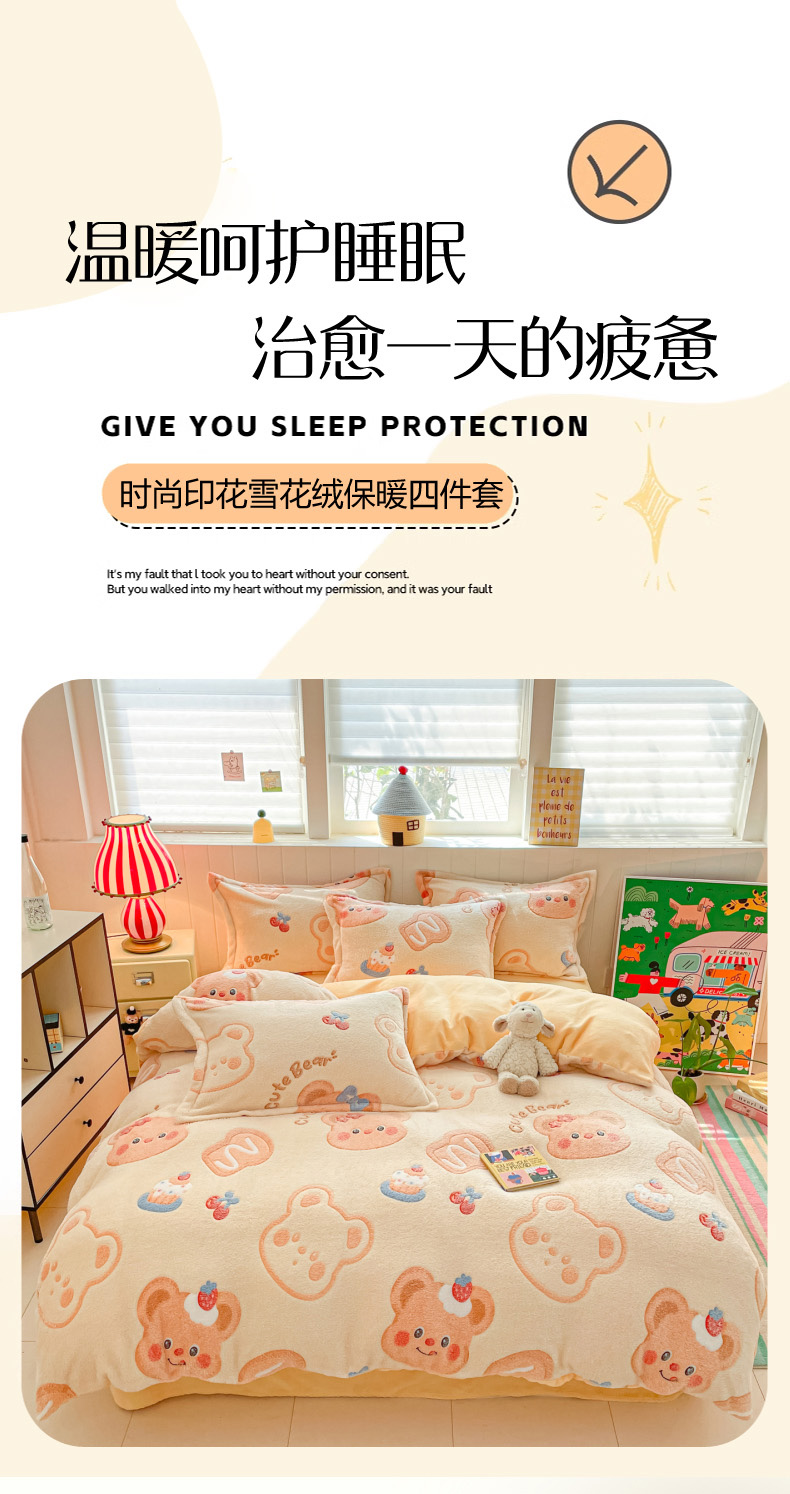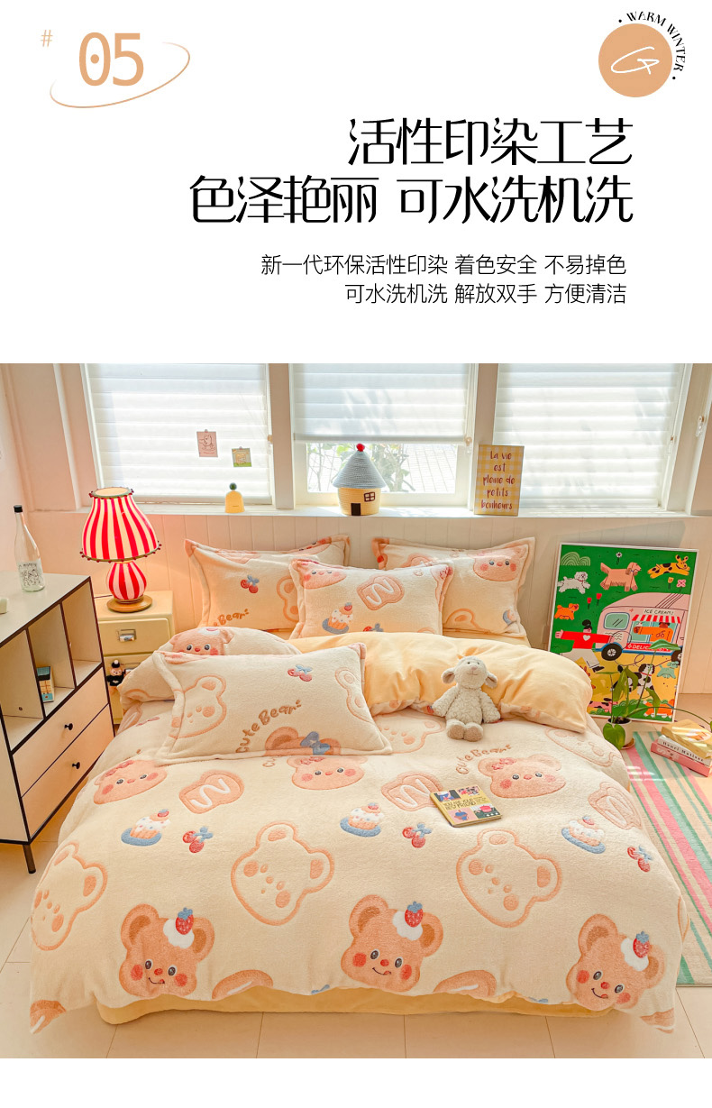 (总)沐慕 2025新款A类200g加厚雪花绒180g牛奶绒四件套,黄油小熊,爱心小熊,豹纹猫咪,彩虹,草莓兔,蛋糕兔,蛋糕小兔,粉嫩郁金香,花花粉兔,可爱熊,小橘子,星星月亮,熊猫伙伴,雪纳瑞,字母萌宠