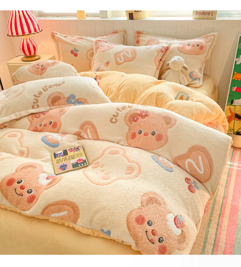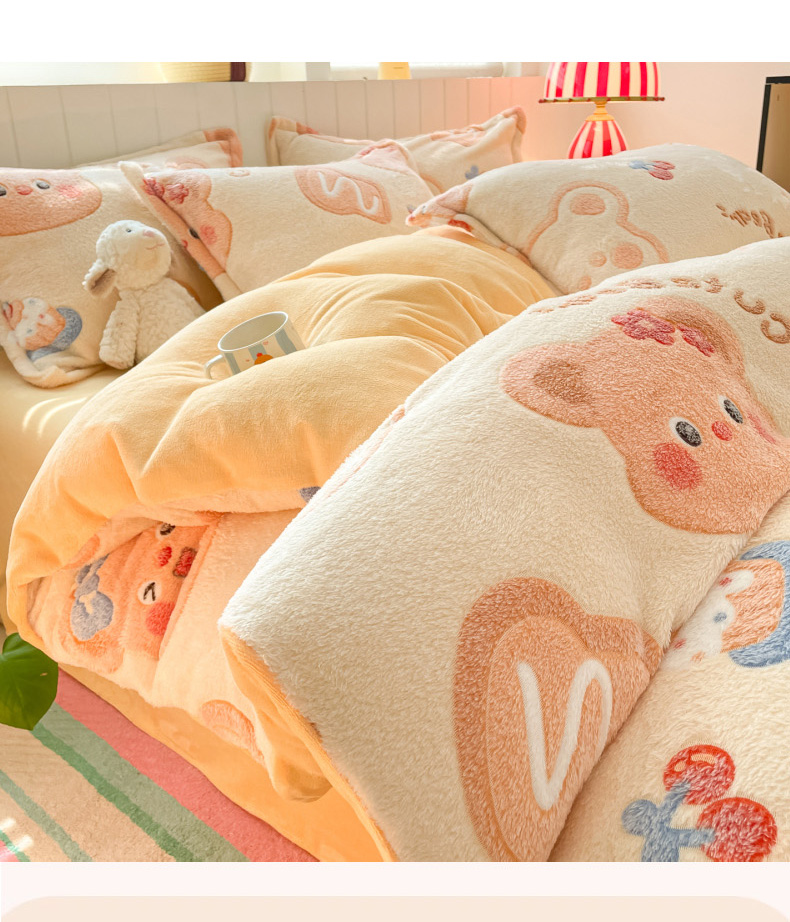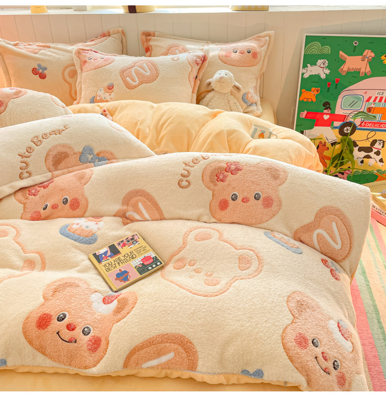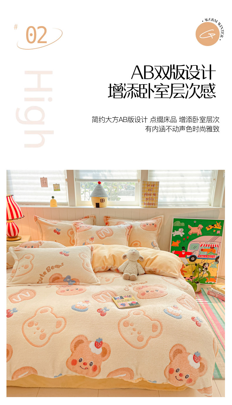 (总)沐慕 2025新款A类200g加厚雪花绒180g牛奶绒四件套,黄油小熊,爱心小熊,豹纹猫咪,彩虹,草莓兔,蛋糕兔,蛋糕小兔,粉嫩郁金香,花花粉兔,可爱熊,小橘子,星星月亮,熊猫伙伴,雪纳瑞,字母萌宠