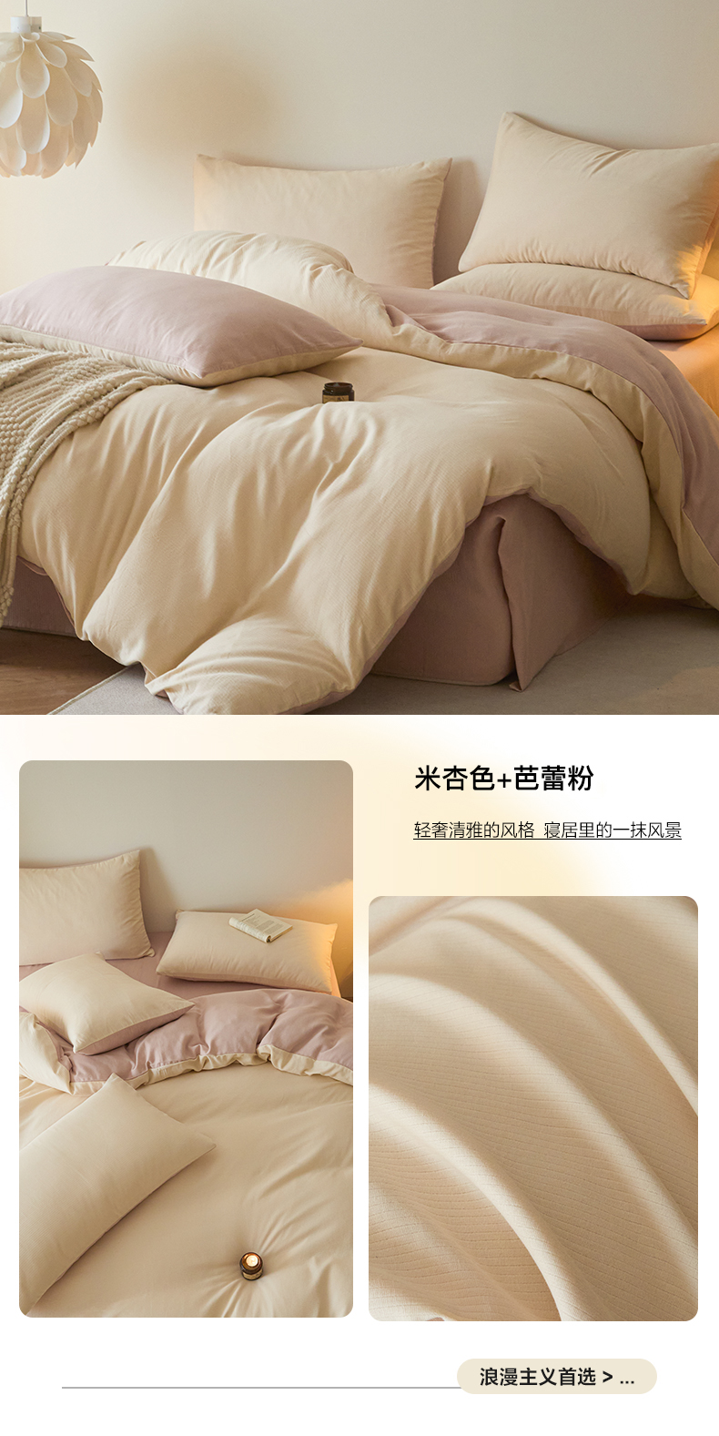 当前位置: 91家纺网 > 商品网购 > 床品套件 > 四件套 > 全棉普通四件套 > 小叮当家纺仓储工厂店 2025新款提供买家秀爆款花型不断货60s水洗提花全棉纯棉磨毛四件套 米杏色+芭蕾粉
