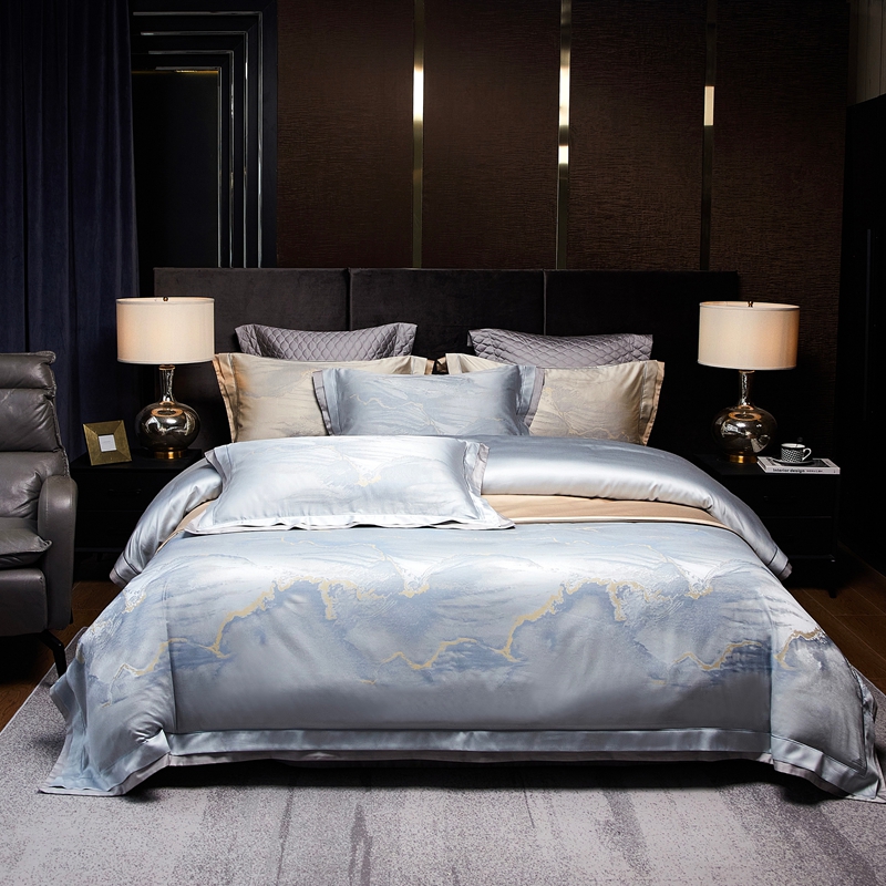 南泉坊 2025新款亲肤舒适双层荷叶边色织提花四件套 科拉-蓝