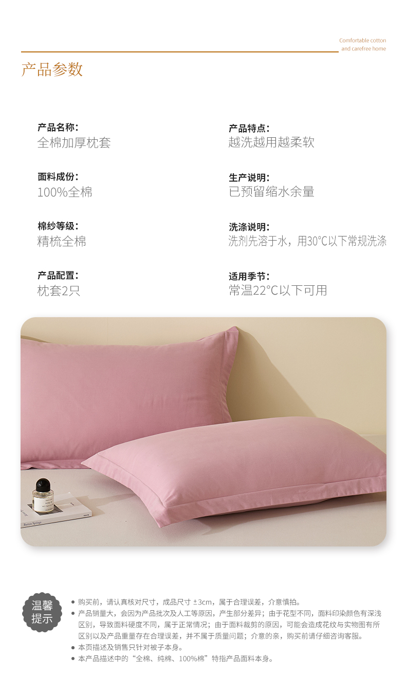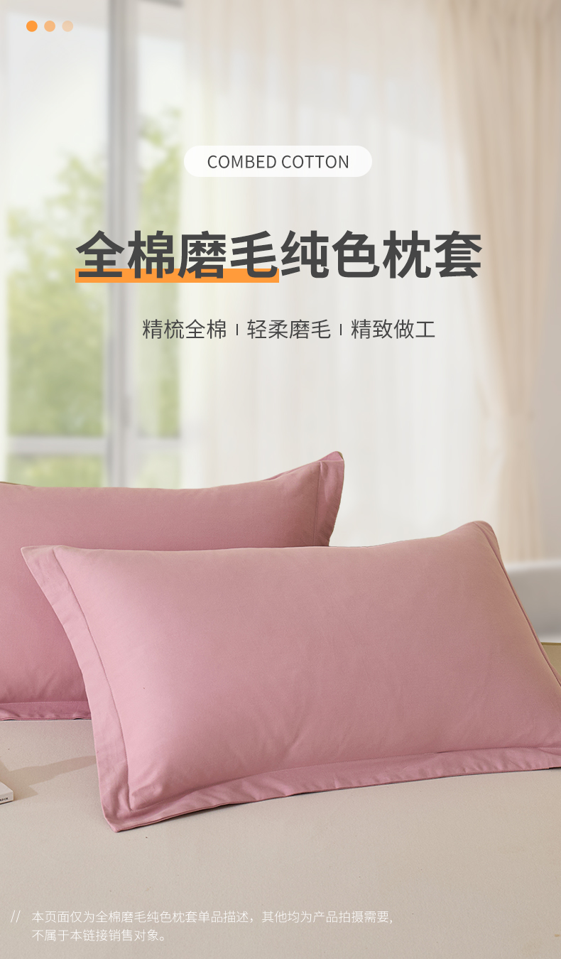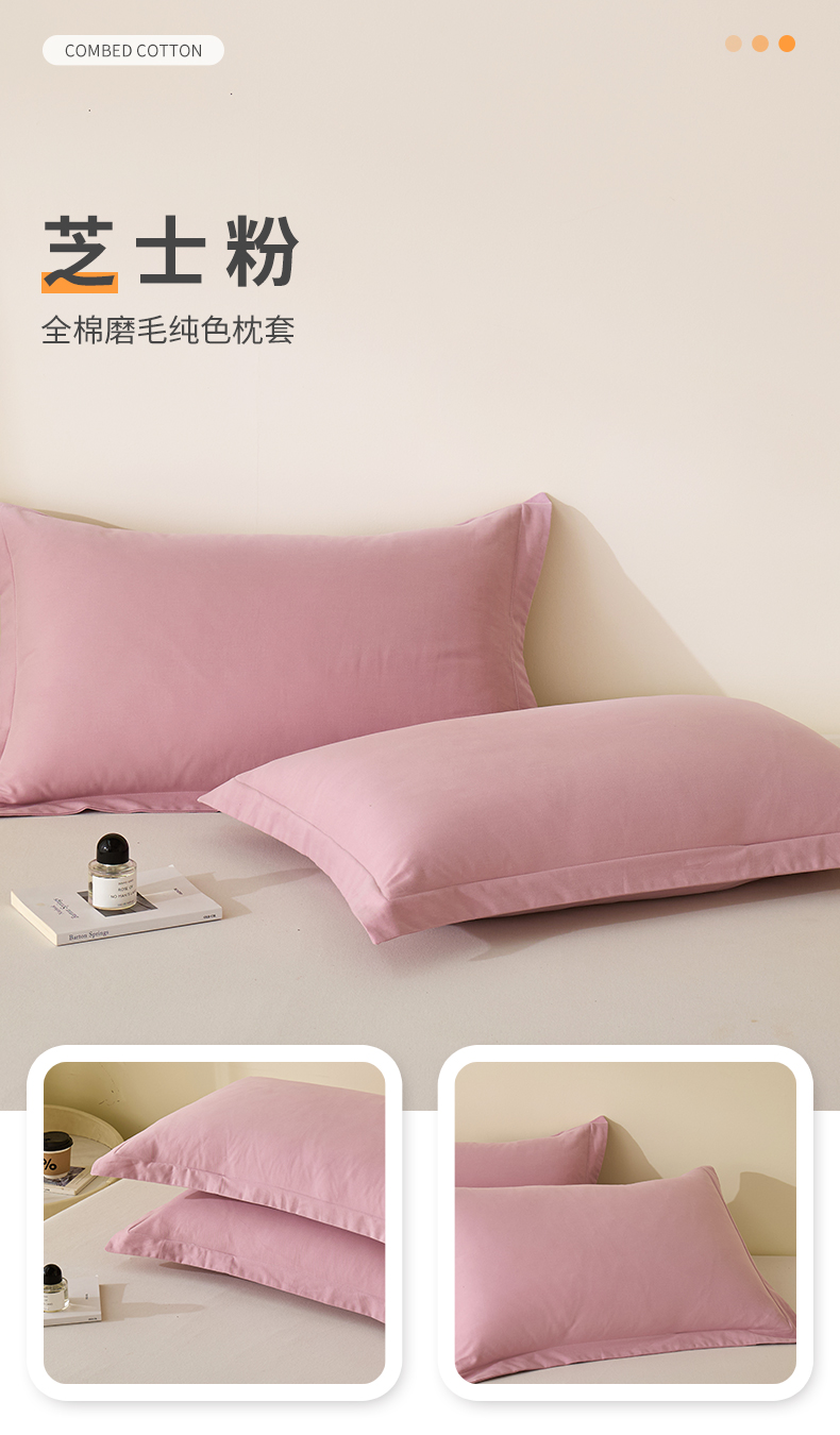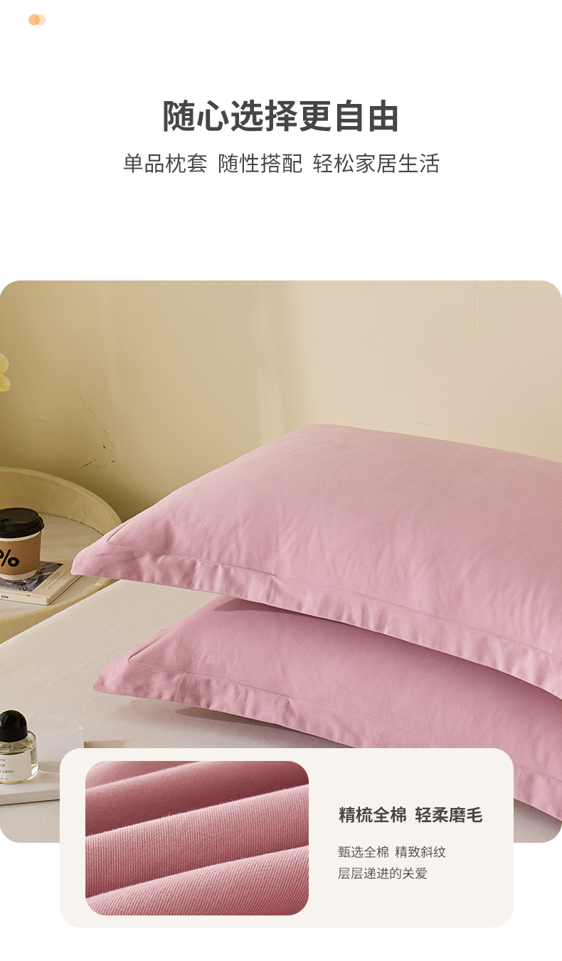 商品名称:元元家居(元元被业) 2025新款全棉纯棉磨毛纯色单枕套 芝士粉