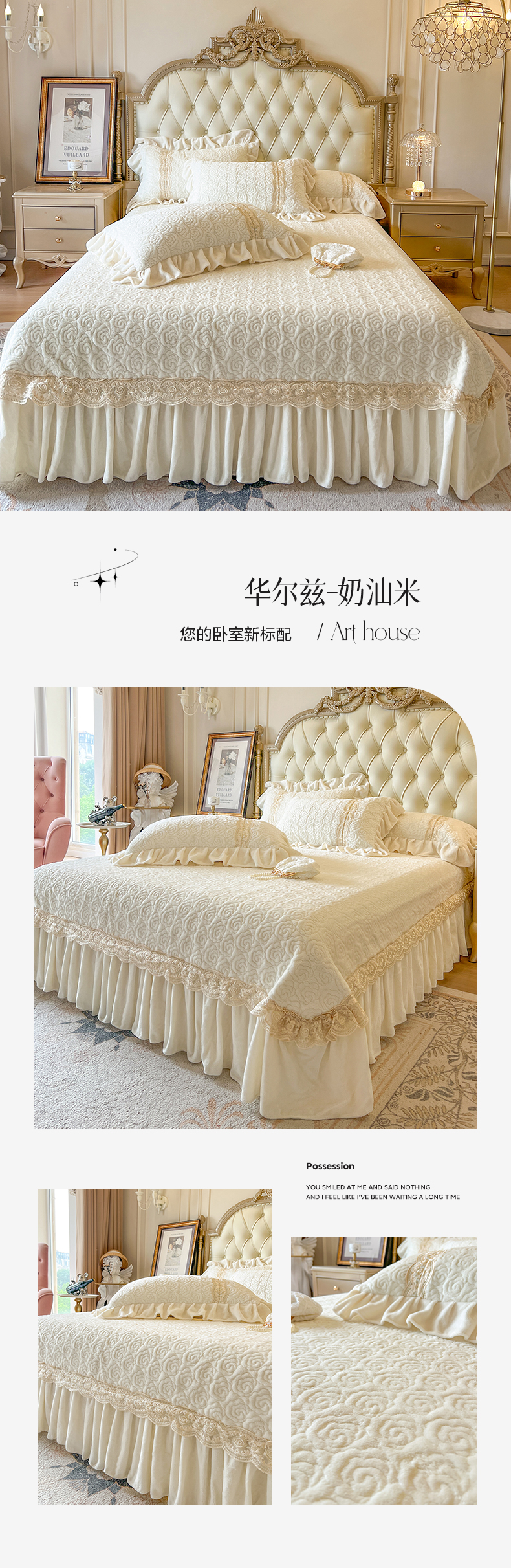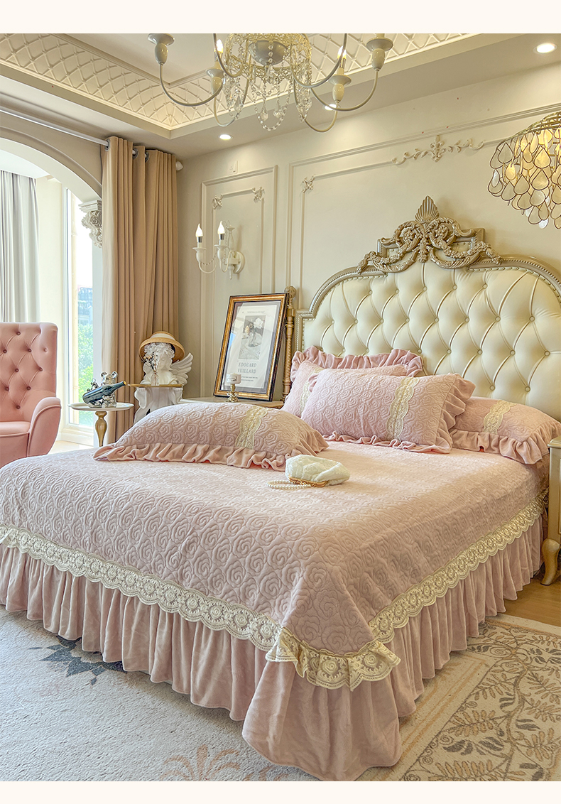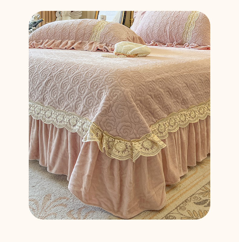 (总)瑞宝 2025新款雕花牛奶绒花边夹棉床盖四件套-莫妮卡,奶昔白,抹茶绿,奶茶咖,少女粉,雾蓝
