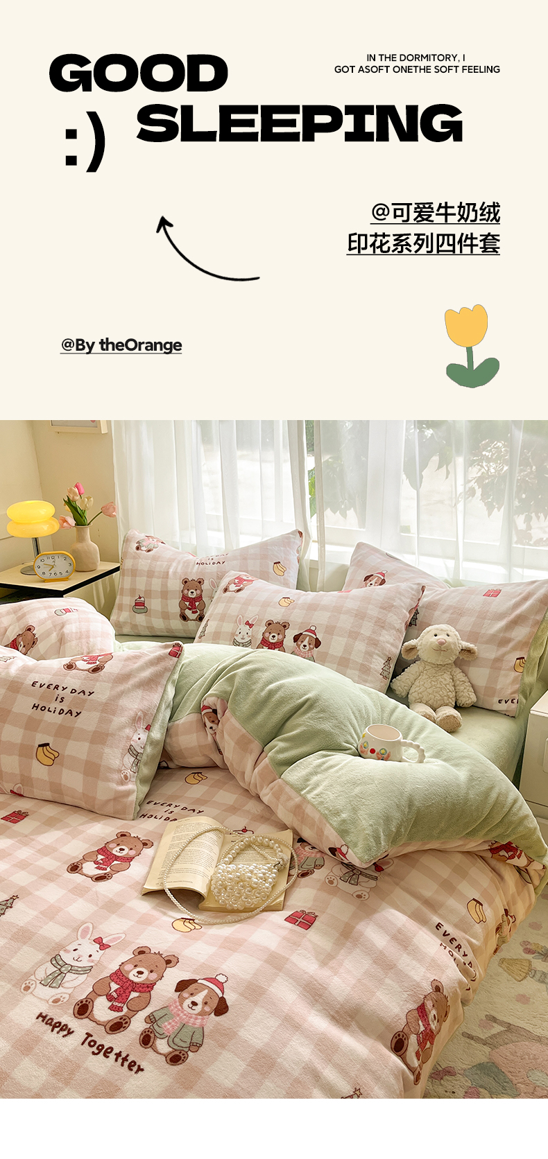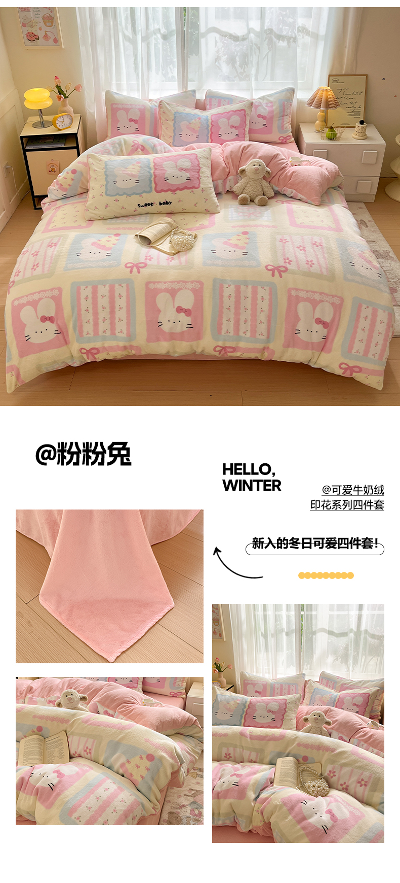 (总)如一 2025新款高克重大版数码印花牛奶绒四件套,毛毛狗,猫咪酱,俏皮狗,色彩猫,小熊仔,熊猫咖,游乐园,粉伙伴,拉兔咖,萌宠黄,萌宠绿,萌派对,围巾狗,线条狗,小粉喵,小花喵,小伙伴