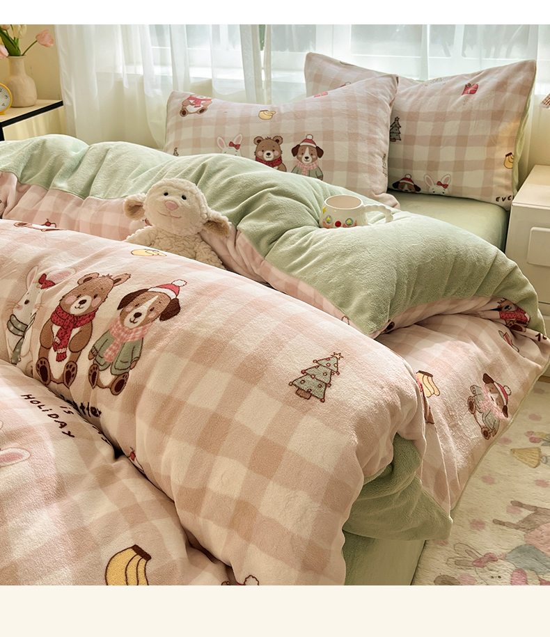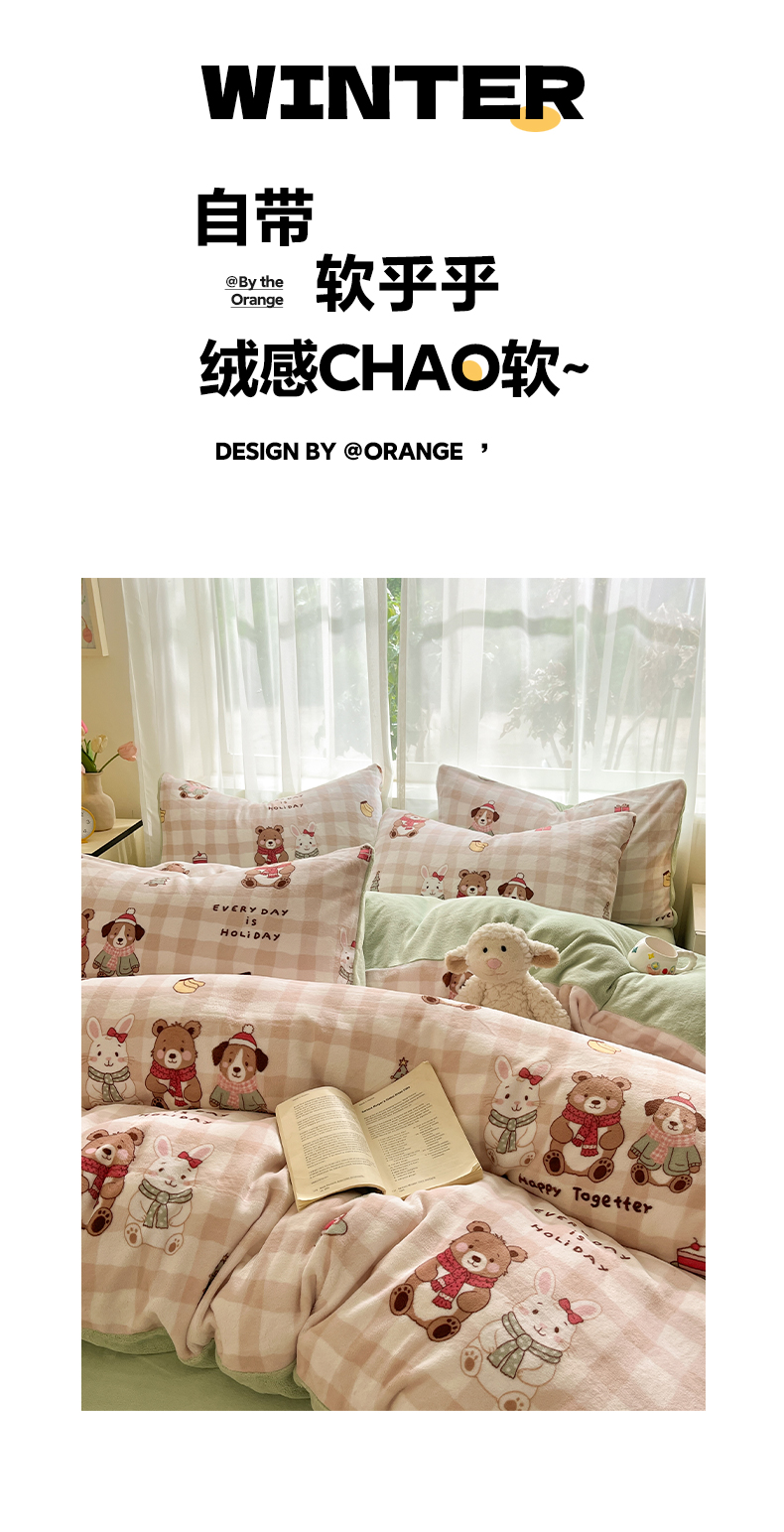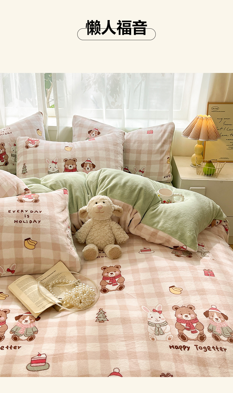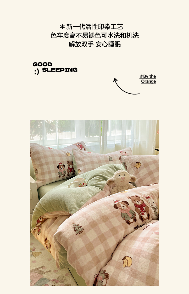 如一 2025新款高克重卡通印花牛奶绒四件套第三批 圣诞日