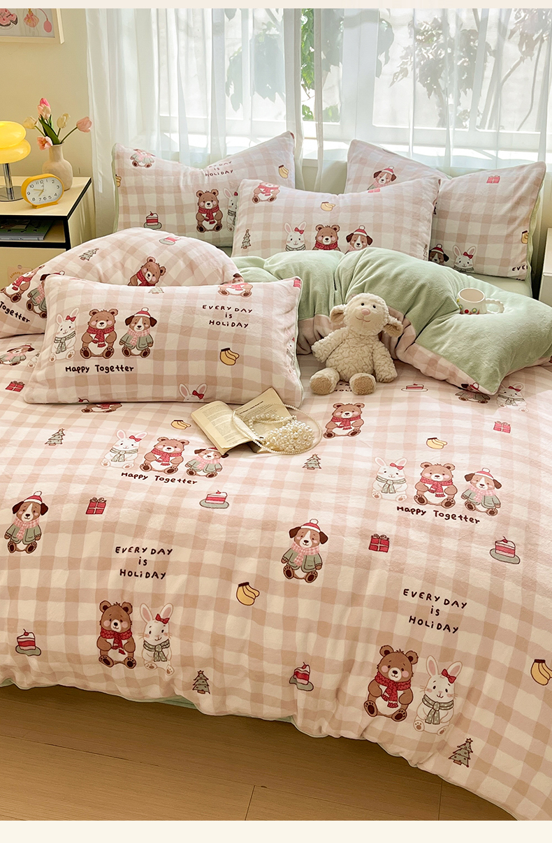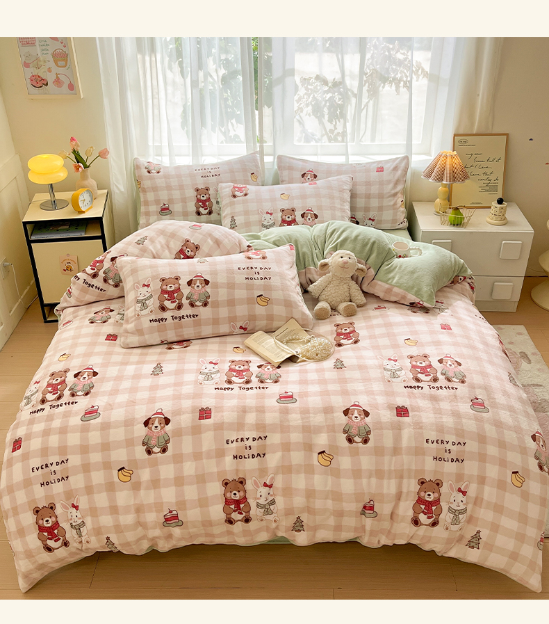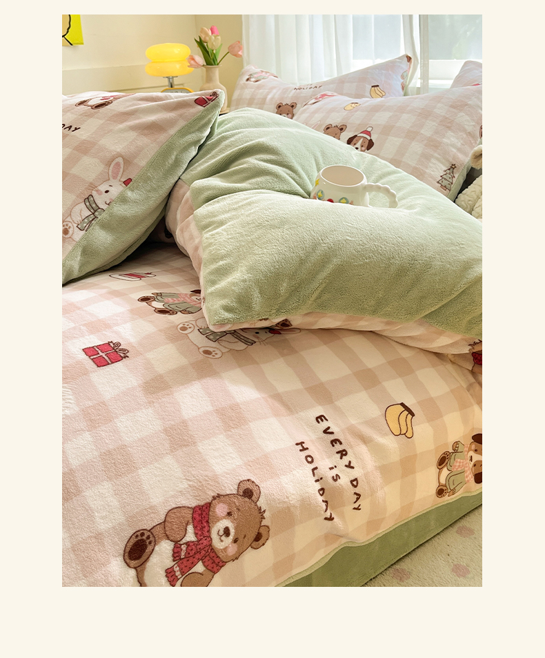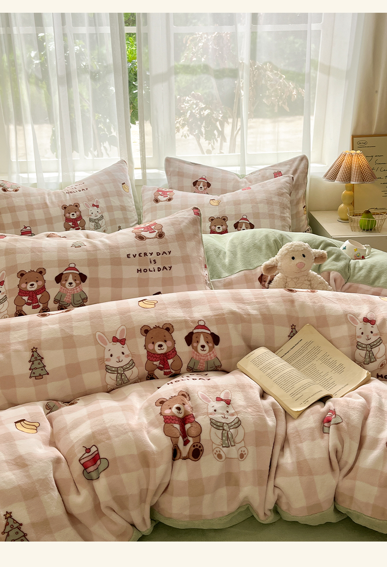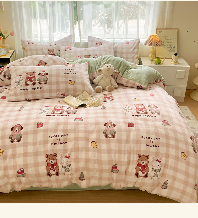 如一 2025新款高克重卡通印花牛奶绒四件套第三批 圣诞日