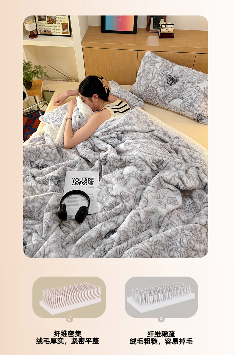 商品名称:(总)春光里 2025新款兔毛羊羔绒收包边毛毯