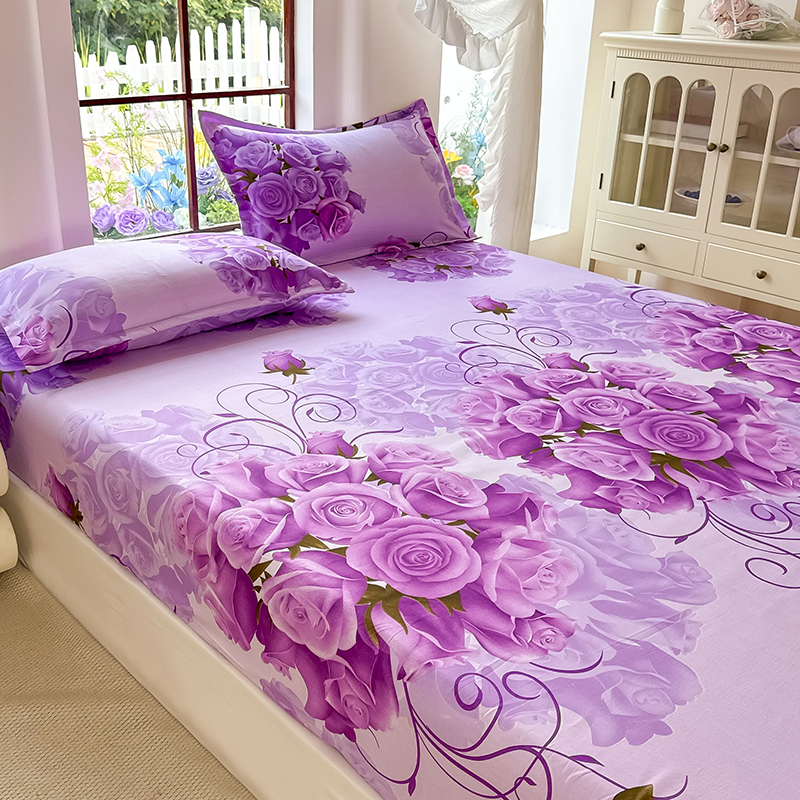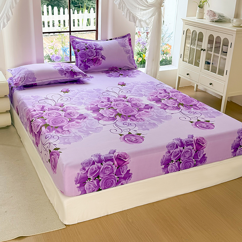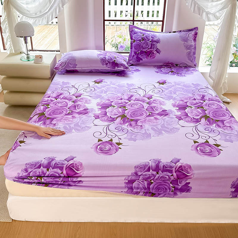 亿佳人 芦荟棉床笠,外贸跨境单床笠磨毛床笠印花床笠 紫气东来