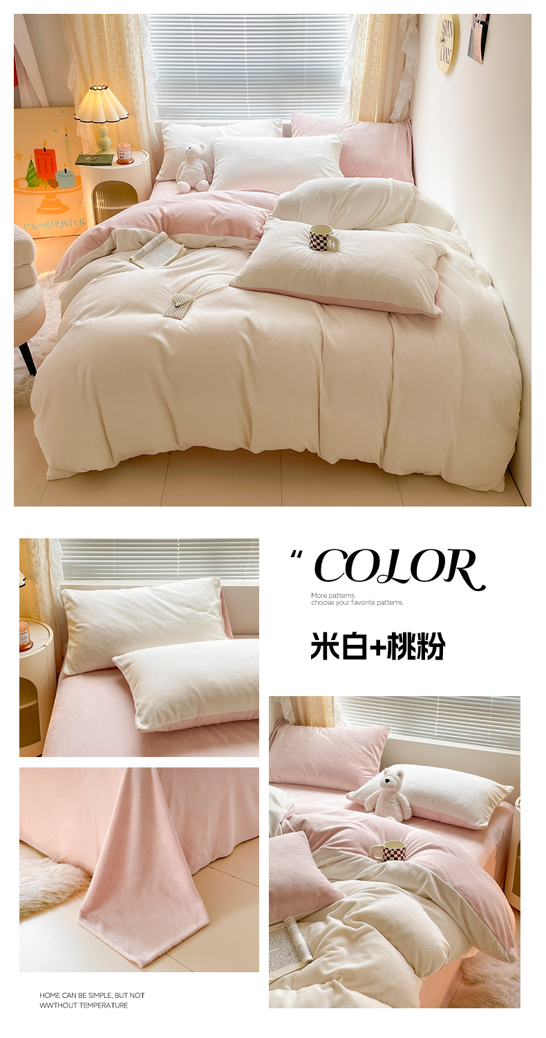 商品名称:小叮当家纺仓储工厂店 2025新款纯色双拼牛奶绒四件套190克 卡尔-米白+浅蓝