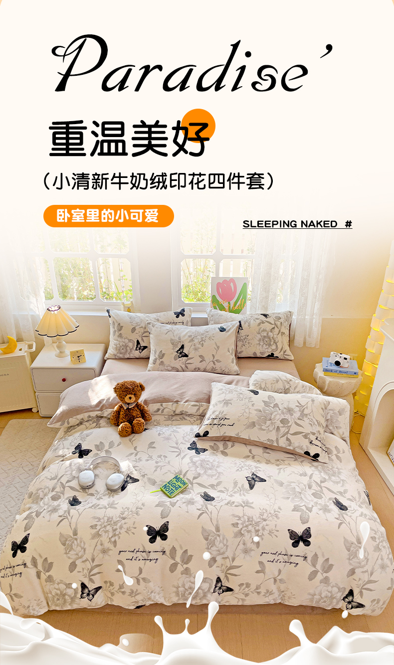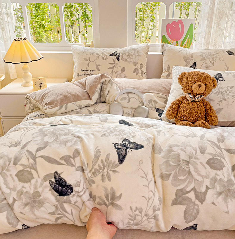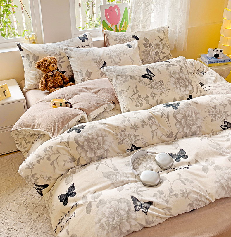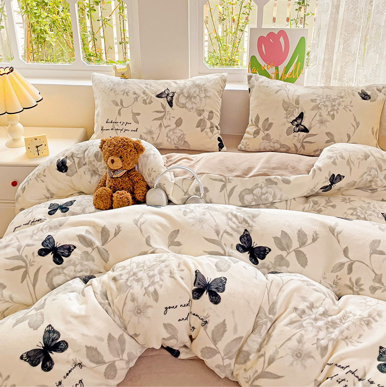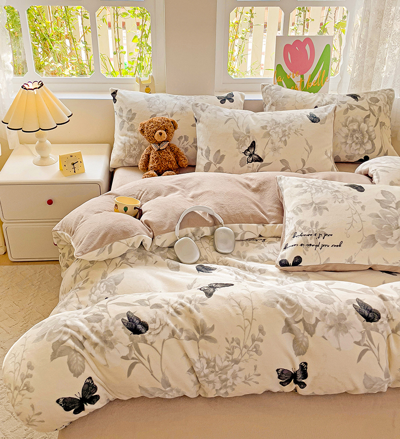 当前位置: 91家纺网 > 商品网购 > 床品套件 > 四件套 > 牛奶绒四件套 > 暖芯优选 2025新款小清新加厚高克重牛奶绒四件套直播热款电商热款 蝴蝶飞舞
