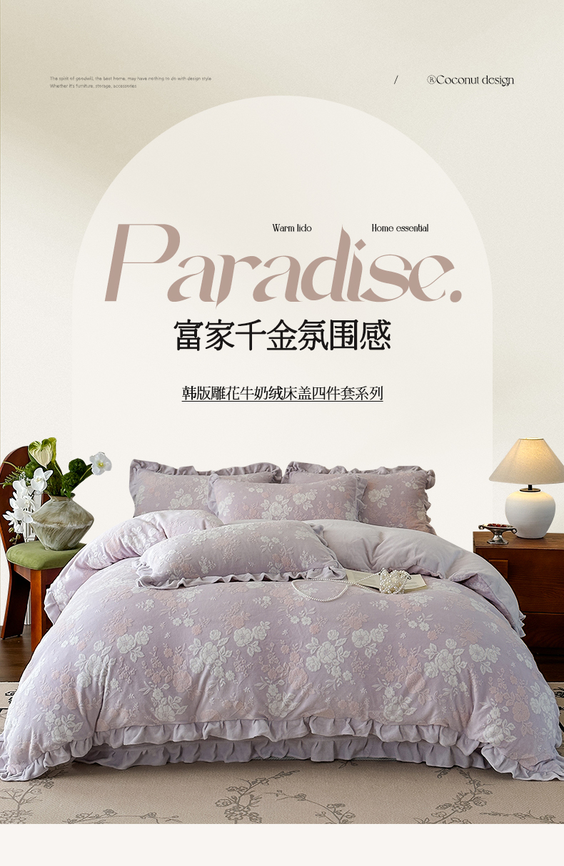 当前位置: 91家纺网 > 商品网购 > 床品套件 > 四件套 > 牛奶绒四件套 > 野合家纺 2025新款法式A类雕花牛奶绒韩版公主风四件套床盖款床单款床笠款 花海-咖