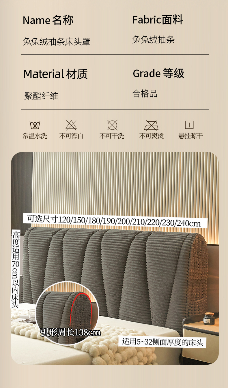 当前位置: 91家纺网 > 商品网购 > 跨境商品 > 床上用品(Bedding) > 床单床罩(Bedspreads Coverlets & Set > 情恒家纺 2025新款兔兔绒抽条加厚床头罩 月光灰