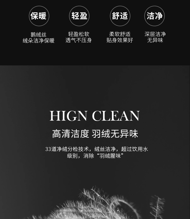 • 羽绒羽毛种类: 白鹅绒
