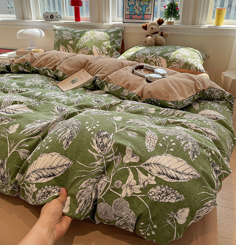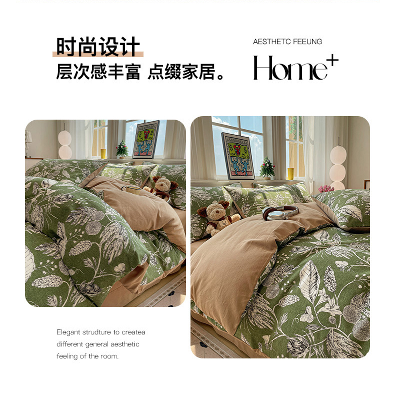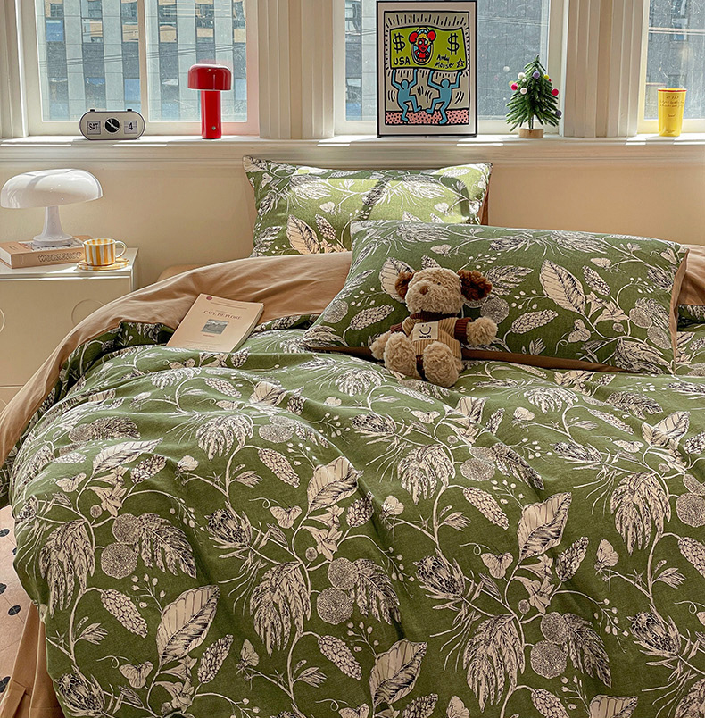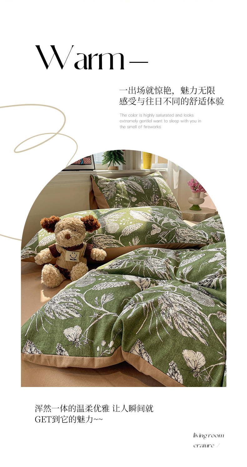 商品名称:忆生活 2025新款秋冬复古风全棉加厚磨毛四件套 璃月-绿