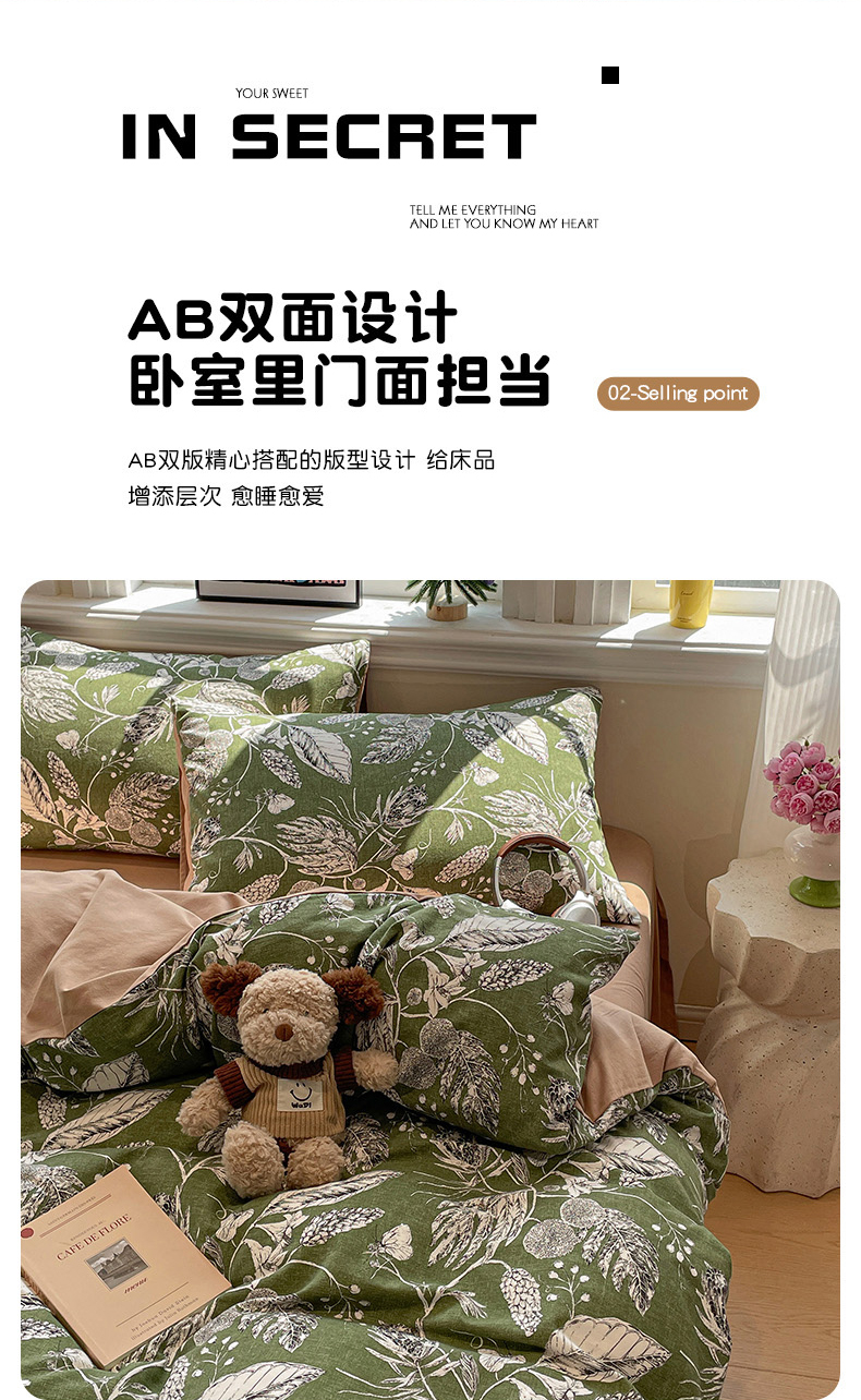 (总)忆生活 2025新款秋冬复古风全棉加厚磨毛四件套,简秋-咖,花汐,花颜-红,璃月-绿,漫枝-灰,漫枝-绿,骑士,芊墨,童年,玩伴,叶语,夜雨-咖