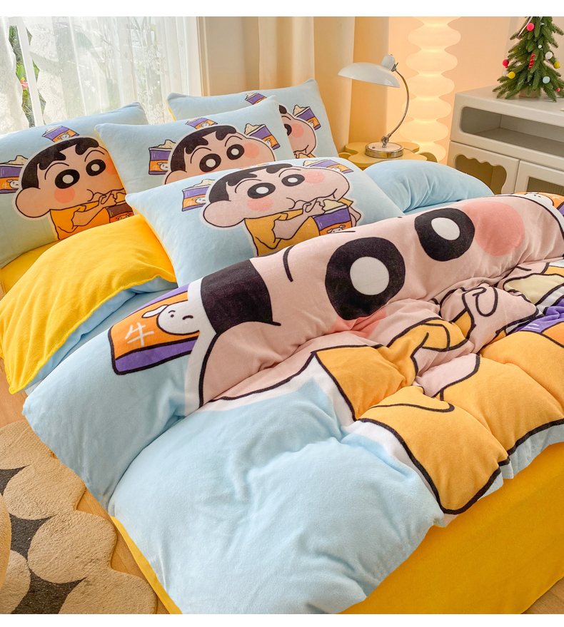 商品名称:一电 2025新款双面牛奶绒被套单件150x200儿童加厚法兰珊瑚绒被罩200x230冬季-第二批 奶茶小新