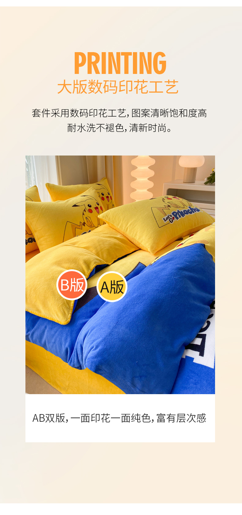商品名称:一电 2025新款双面牛奶绒被套单件150x200儿童加厚法兰珊瑚绒被罩200x230冬季-第二批 淘气皮卡丘