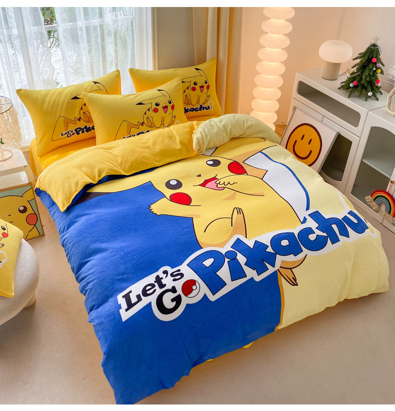(总)一电 2025新款冬季双面牛奶珊瑚绒床上四件套法兰绒床品加绒被套床单三件套-第二批,害羞KT,奔跑皮卡丘,彩虹米妮,草莓大雄,花朵狐,机器人,美人鱼,女王,太空玉桂狗,淘气皮卡丘,小新,音符叮当,贝贝熊,彩虹小马,草莓皮卡丘,草莓总动员,潮流米奇,皇后,黄蜂机器人,可爱星黛露,可爱玉桂狗,萌萌KT,咪咪美乐,米老鼠,皮卡丘家族,汽车草莓熊,擎天柱,圈圈机器人,史迪仔,太空米奇,太空鸭,网红皮卡丘,小狐,冰冰星黛露,黄小鸭,奶茶小新,小熊玉桂狗
