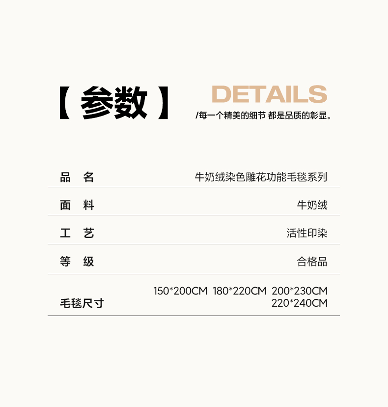 当前位置: 91家纺网 > 商品网购 > 毛毯休闲毯绒毯 > 毛毯 > 寐绸家纺 2025新款230g牛奶绒染色雕花功能毛毯 雕花功能毯-玛雅