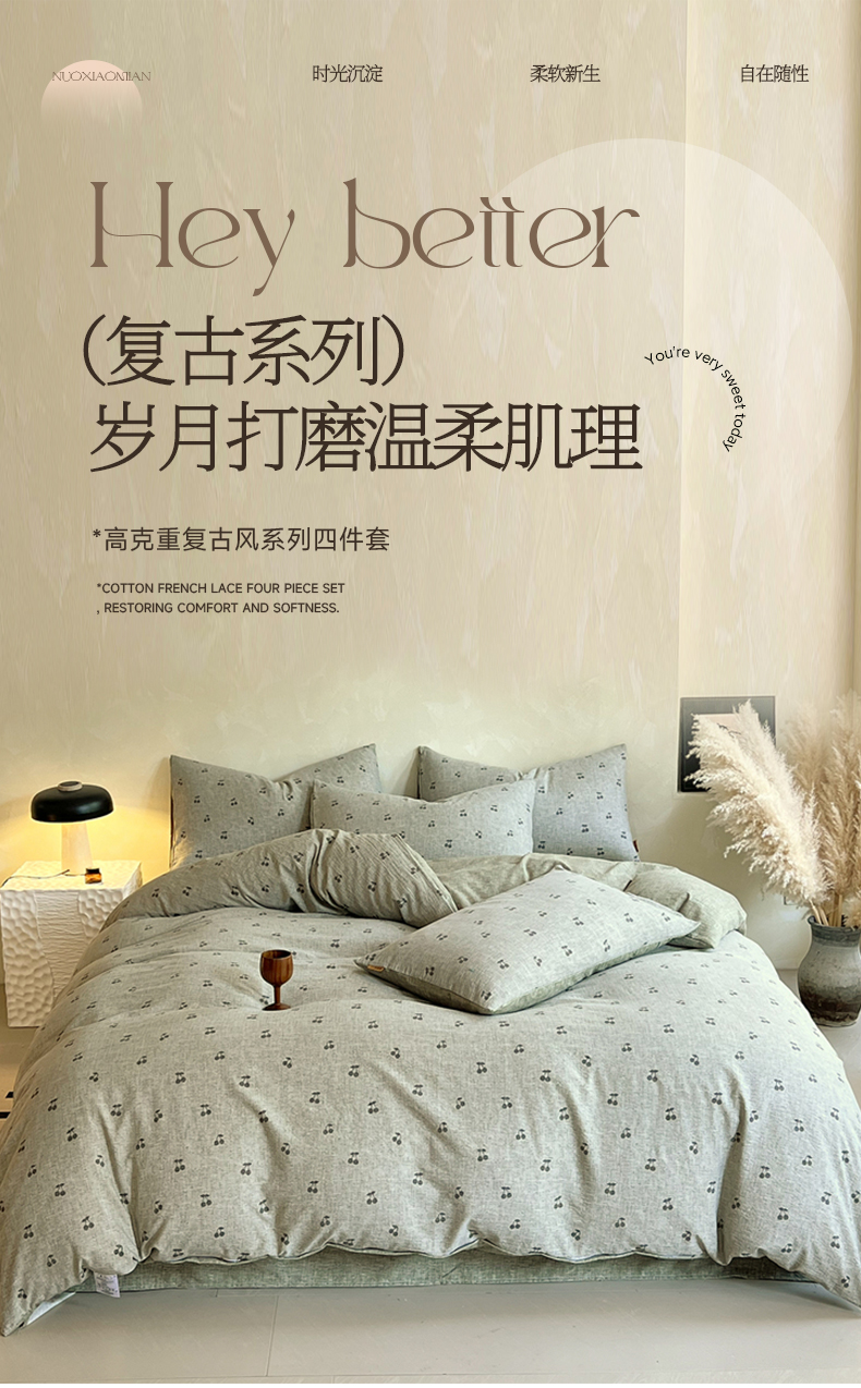 当前位置: 91家纺网 > 商品网购 > 床品套件 > 四件套 > 磨绒四件套 > 灿哈家纺 2025新款复古风仿麻四件套 晓雅