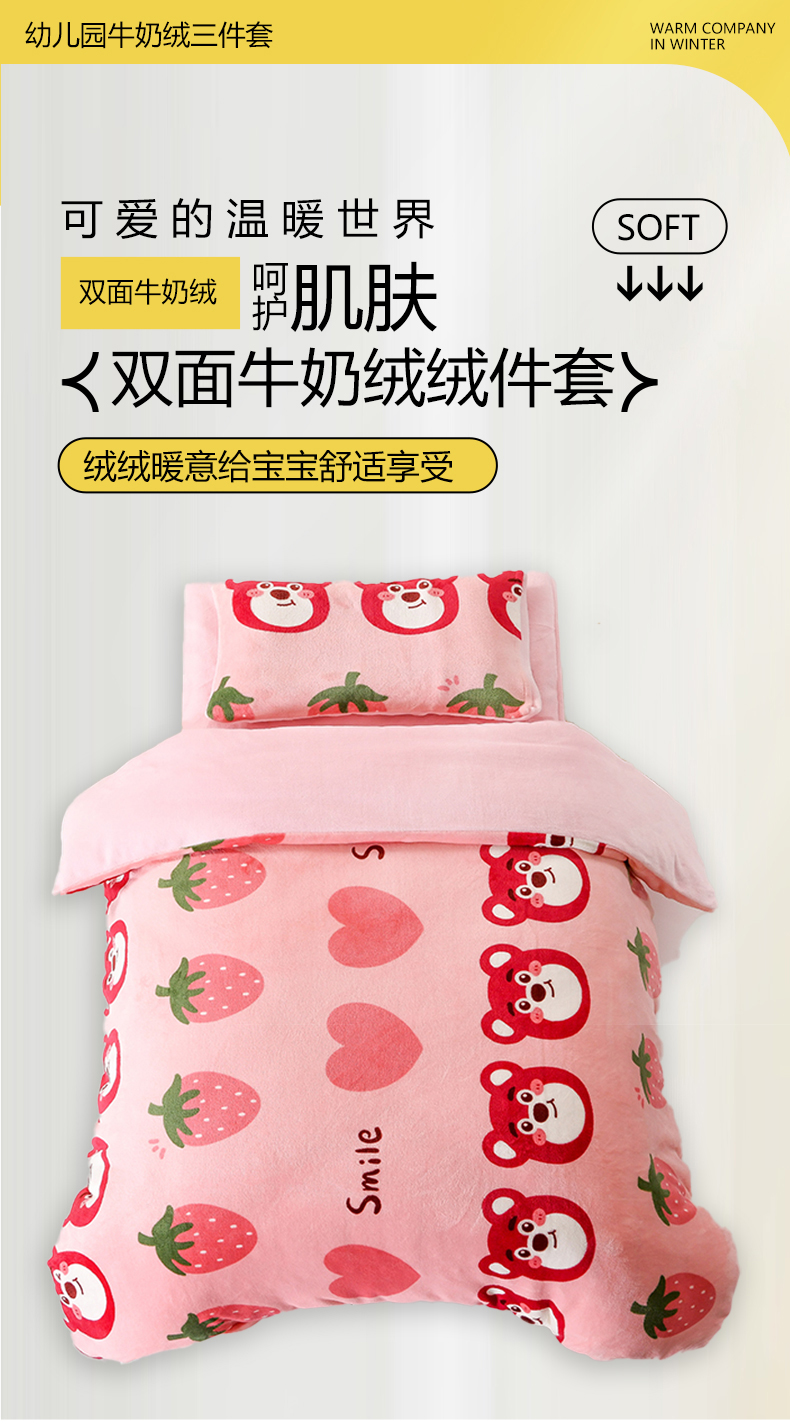 商品名称:(总)萌宝家纺 2025新款加厚儿童牛奶绒被套幼儿园保暖三件套