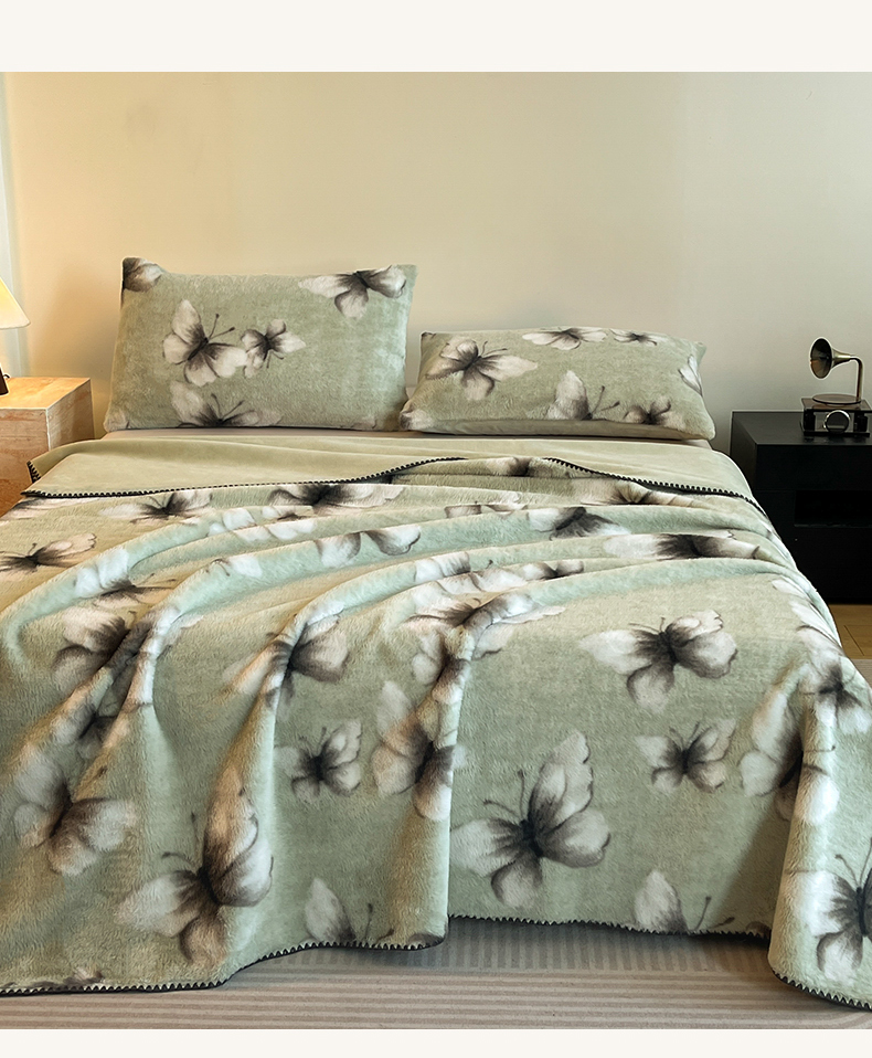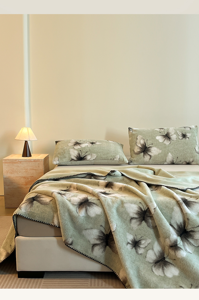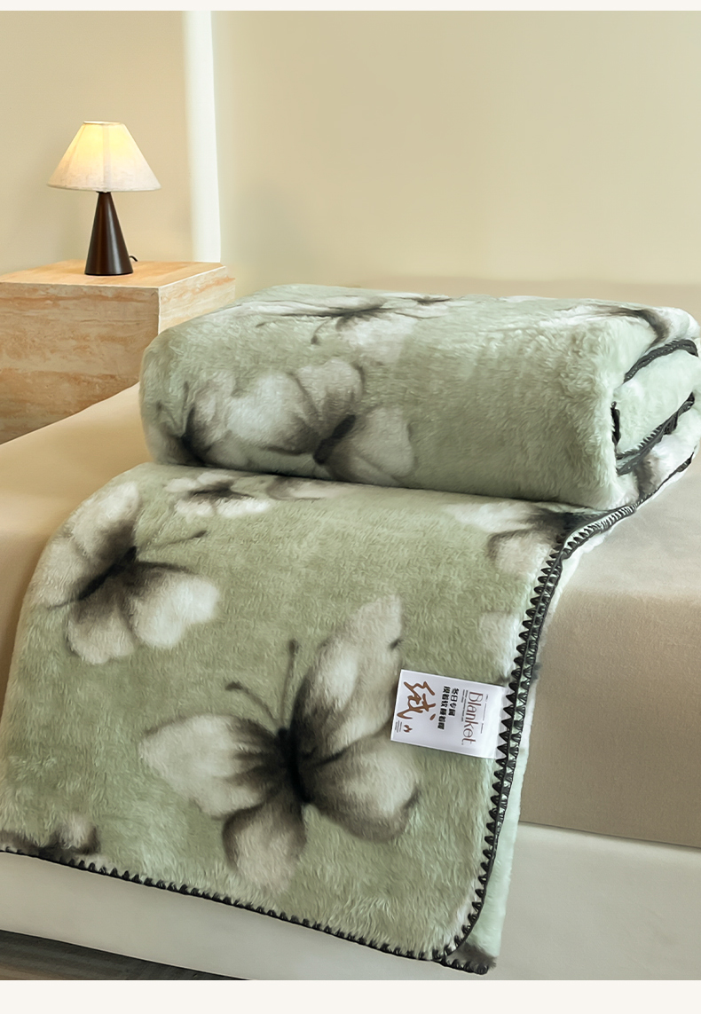 子曰 2025新款A类美拉德兔绒复合毯系列 美拉德毛毯-蝶舞绿